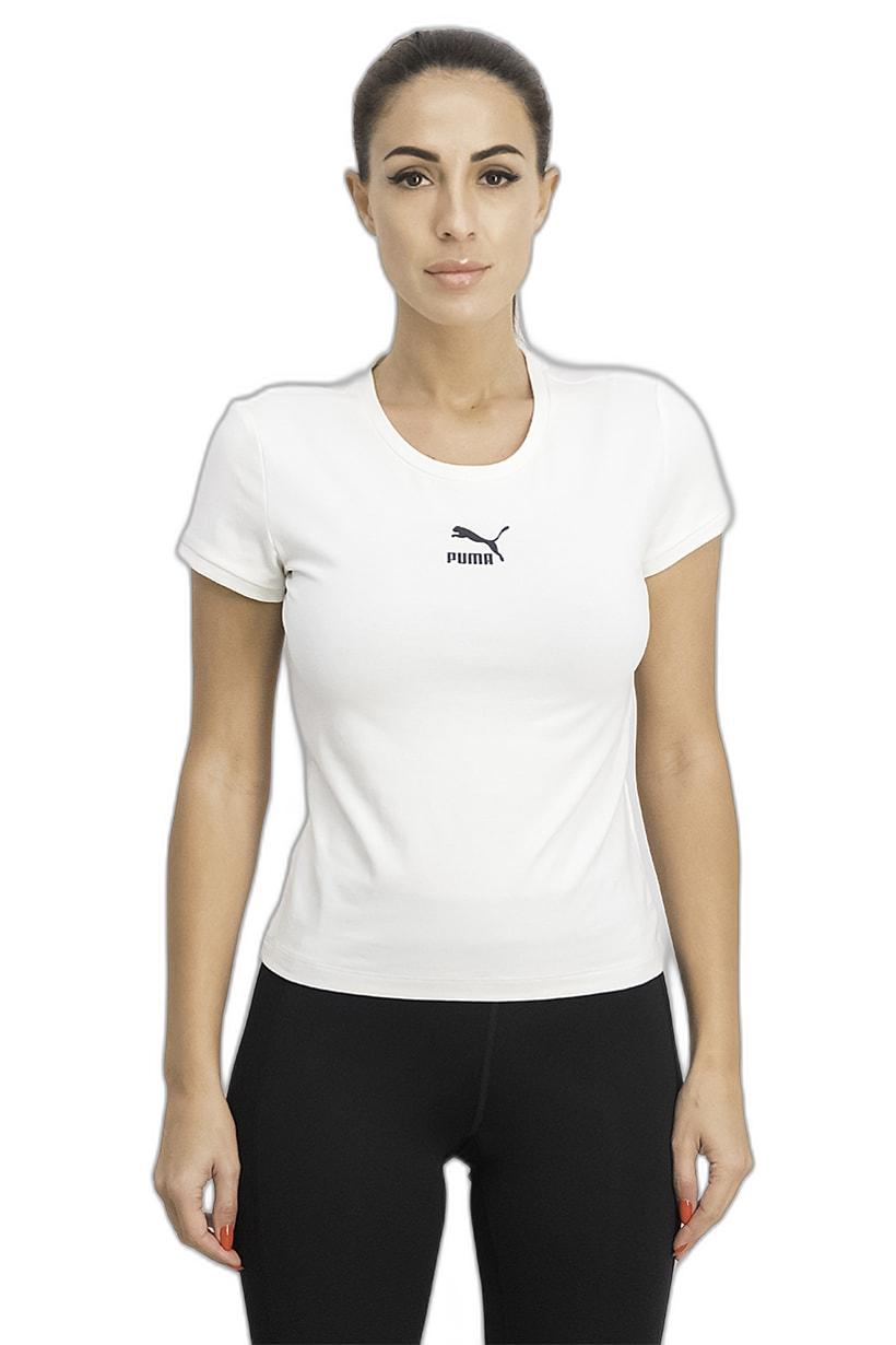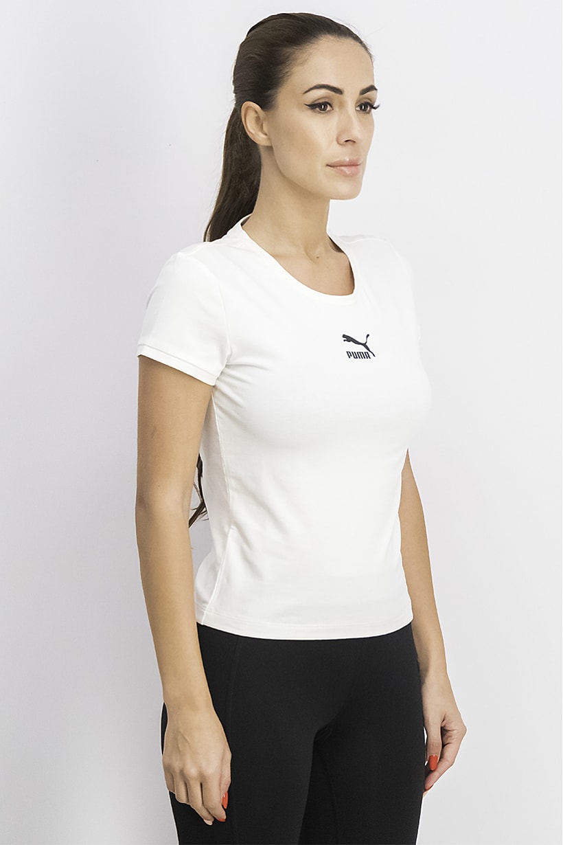 This product is easy to care for as it is machine washable. The size displayed is in international sizing and the fabric is made of 100% cotton, with a light thickness suitable for outdoor sports. Please note that the product color may appear slightly different due to lighting or monitor settings. The t-shirt features a brand logo print and is designed for sportswear with a comfortable fit. The color of the t-shirt is white.