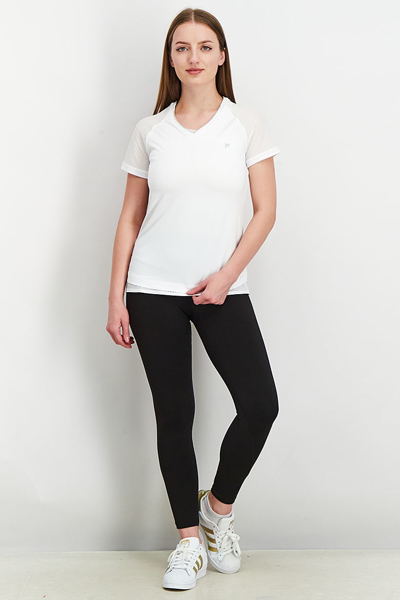 White Short Sleeve Training Tee for Women’s Sportswear.