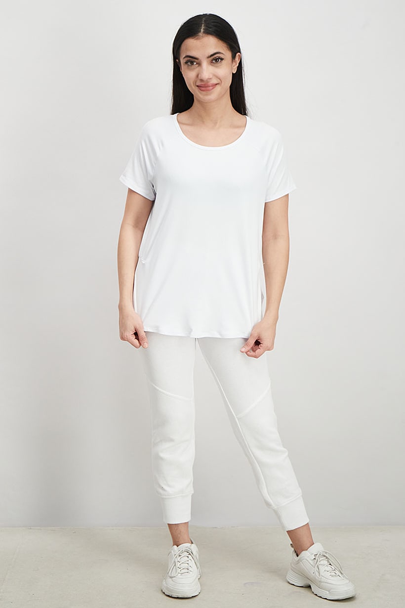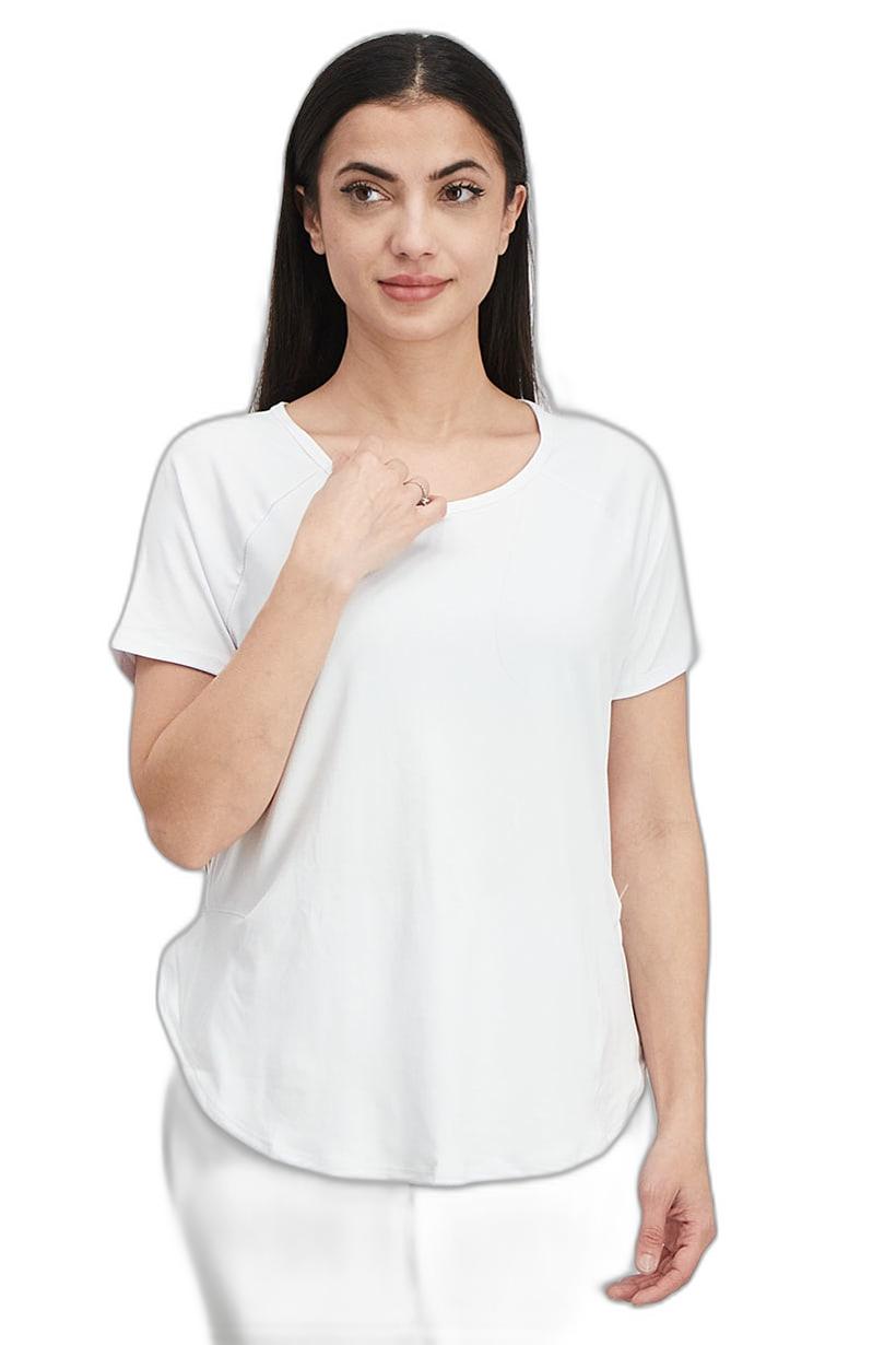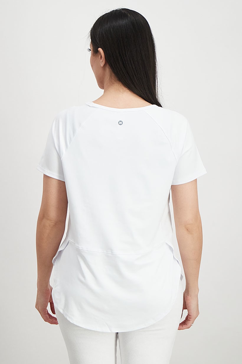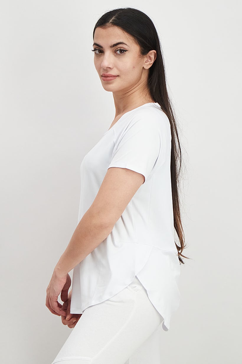 Care : Machine washable, Fit : Sportswear Fit, Ideal For : Women, Size shown : International, Sleeve Length : Short Sleeve, Thickness : Light, Type of Sport : Training, Types of Hem : Straight hem, Types of Neckline & Collar : Round neckline, Types of Sleeve : Short sleeve, Disclaimer : Product color may slightly vary due to photographic lighting sources or your monitor settings., Fabrics : 87% Polyester, 13% Spandex, Pattern & Print : Plain/Solid, Sportswear Type : Tops, Types of Closures : Pullover, Color Family : White,