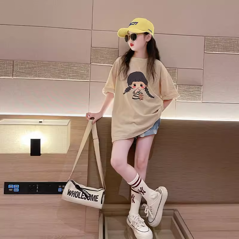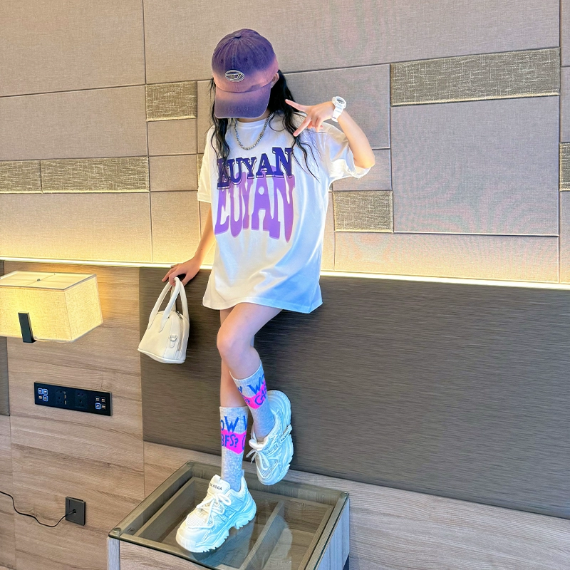 | nameOriginal | White short-sleeved 2024 new fashionable big children's T-shirt |
