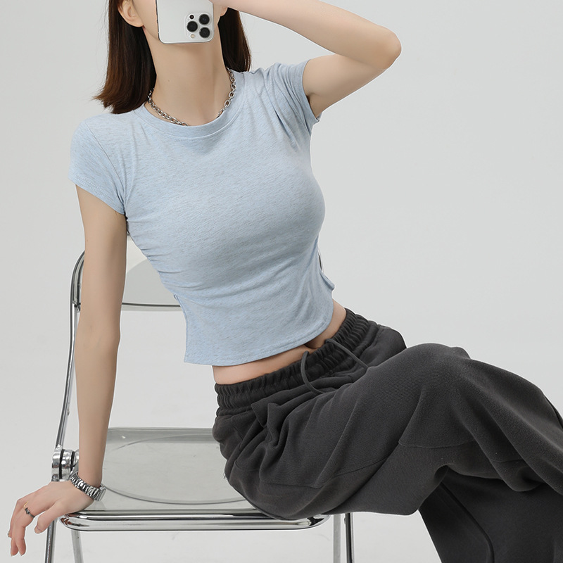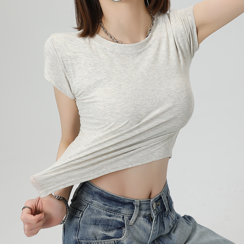 White Short-sleeved Bottoming Shirt Inner T-shirt Women's 2024 Spring and Summer Thin Slim-fit Spice Girl Short Clothes