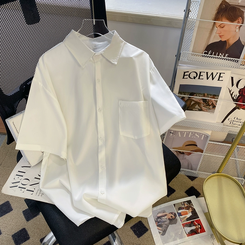 | nameOriginal | White short-sleeved cardigan shirt for men and women basic ice silk shirt trendy summer casual workwear outer wear three-quarter sleeves |