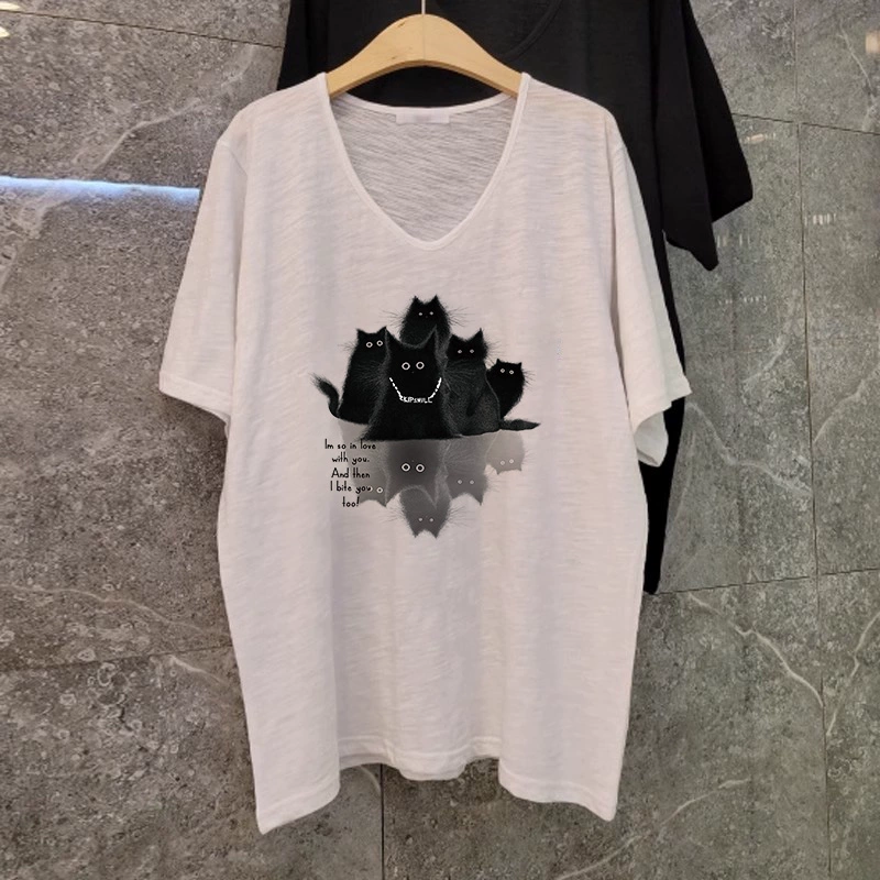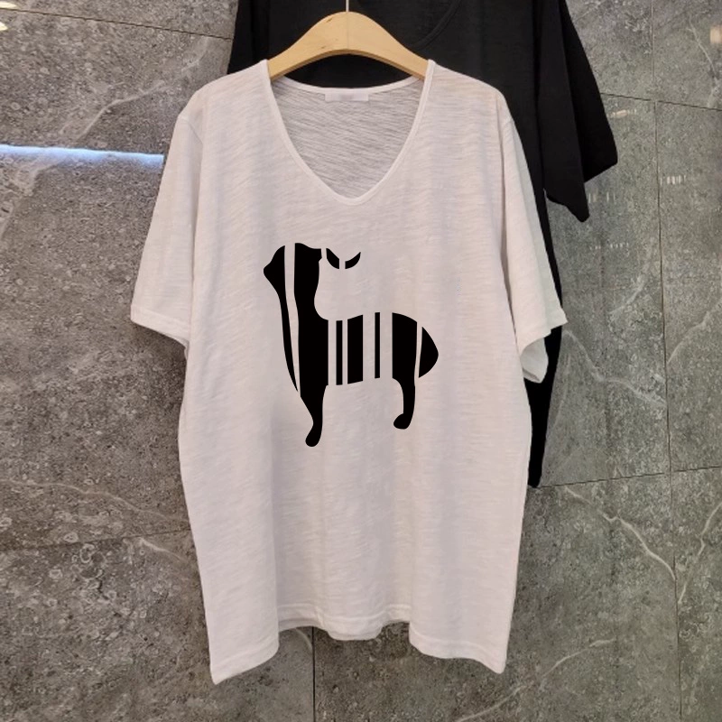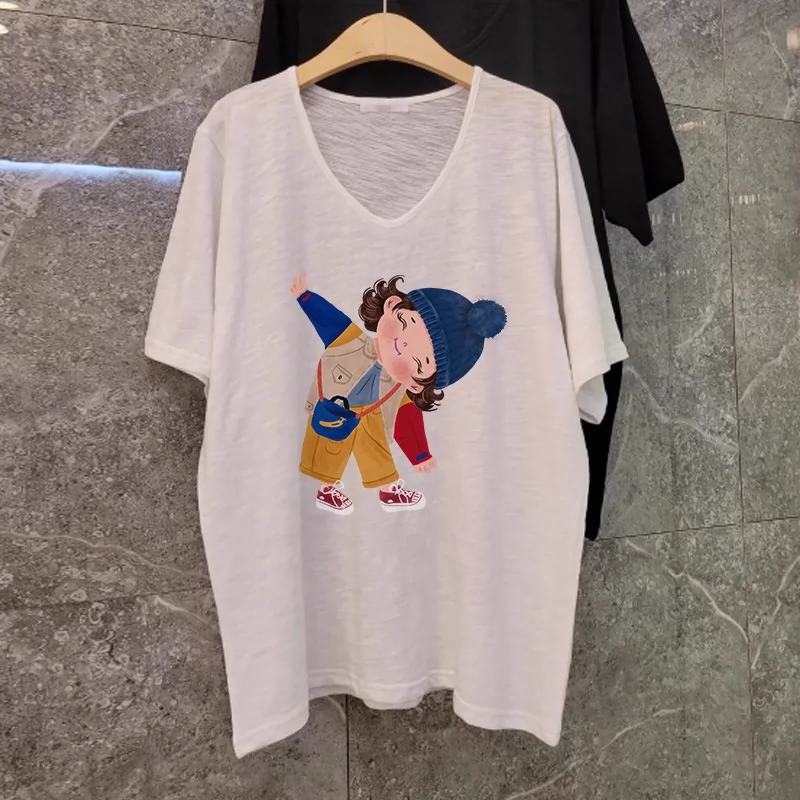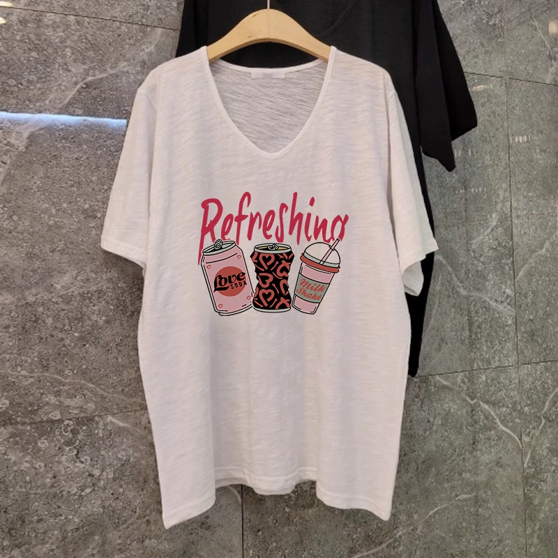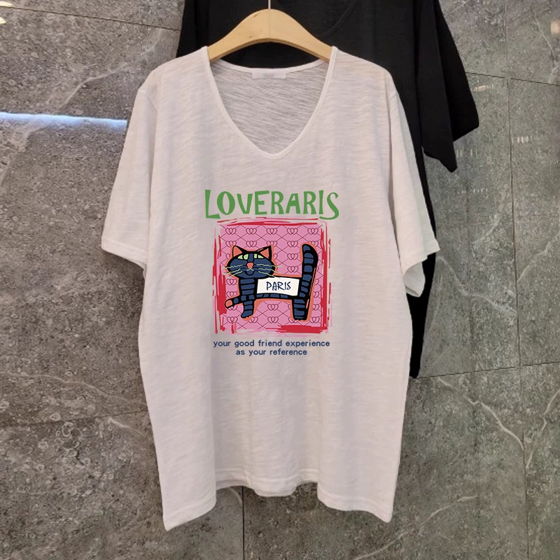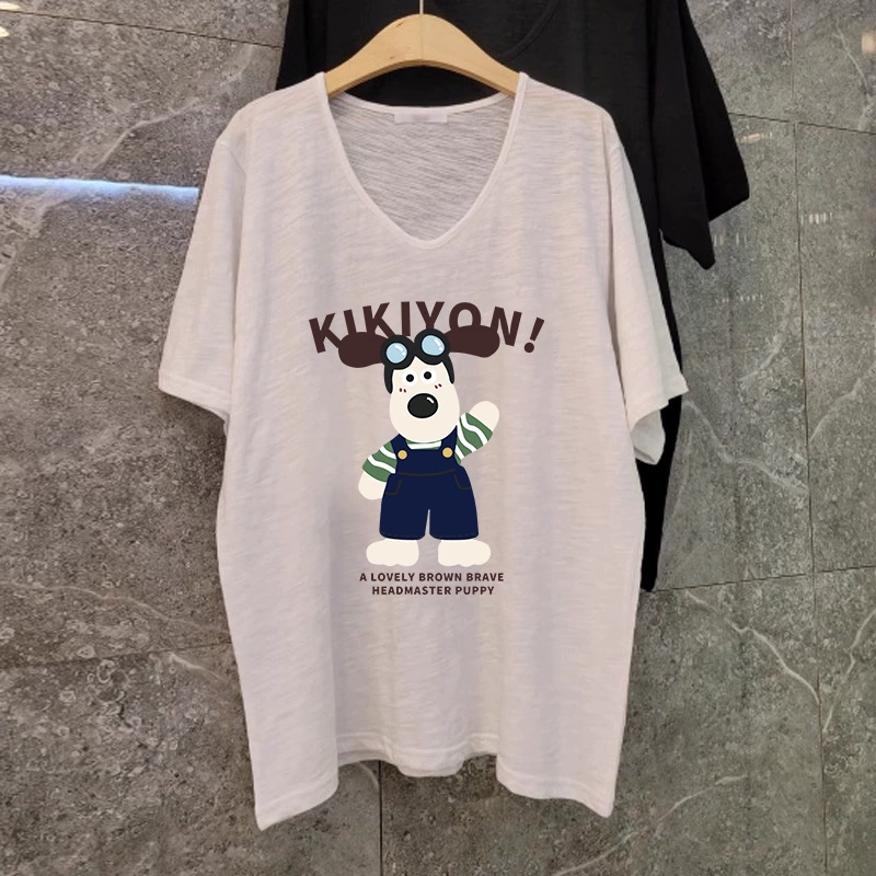 | nameOriginal | White short-sleeved casual loose slimming top V-neck T-shirt |