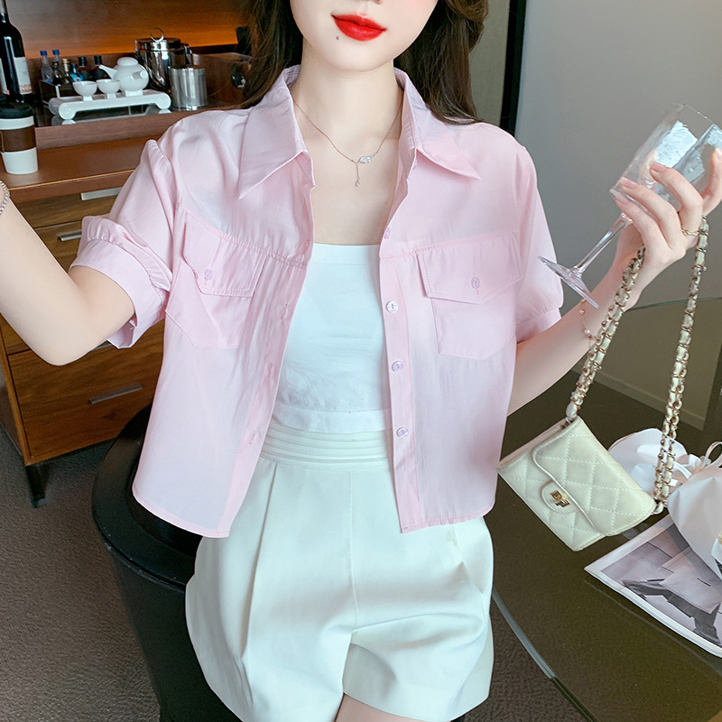 | nameOriginal | White Short-sleeved Shirt Women's Summer Thin 2024 New Niche Outfit Loose Short Polo Collar Jacket |