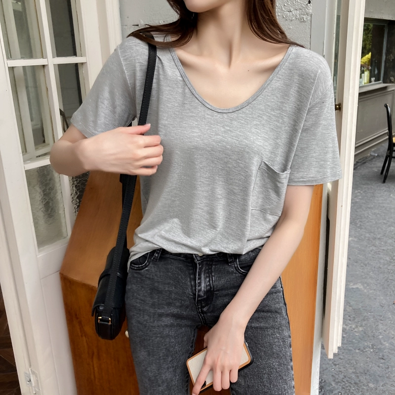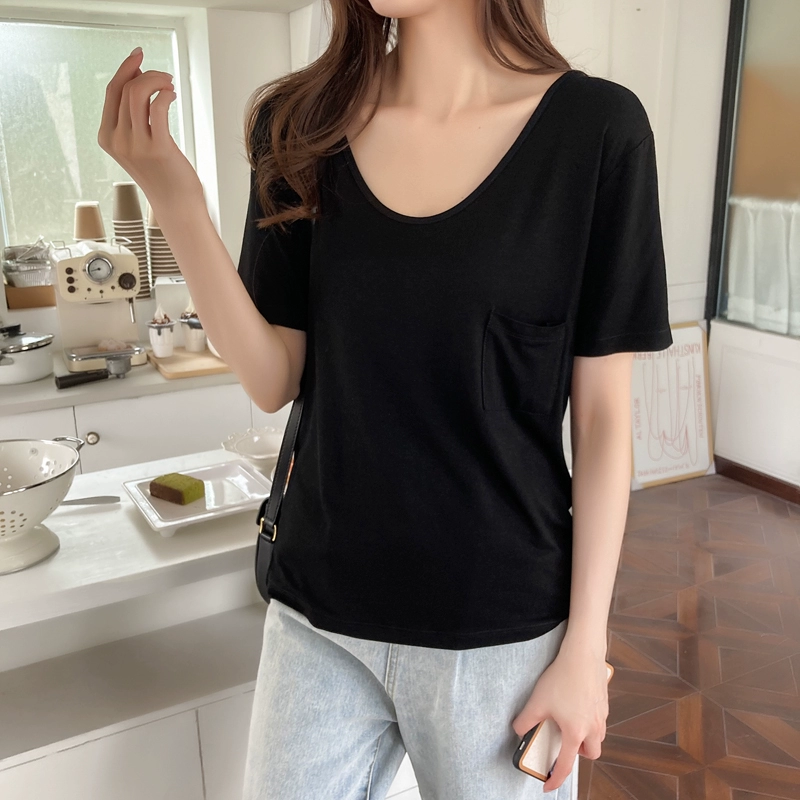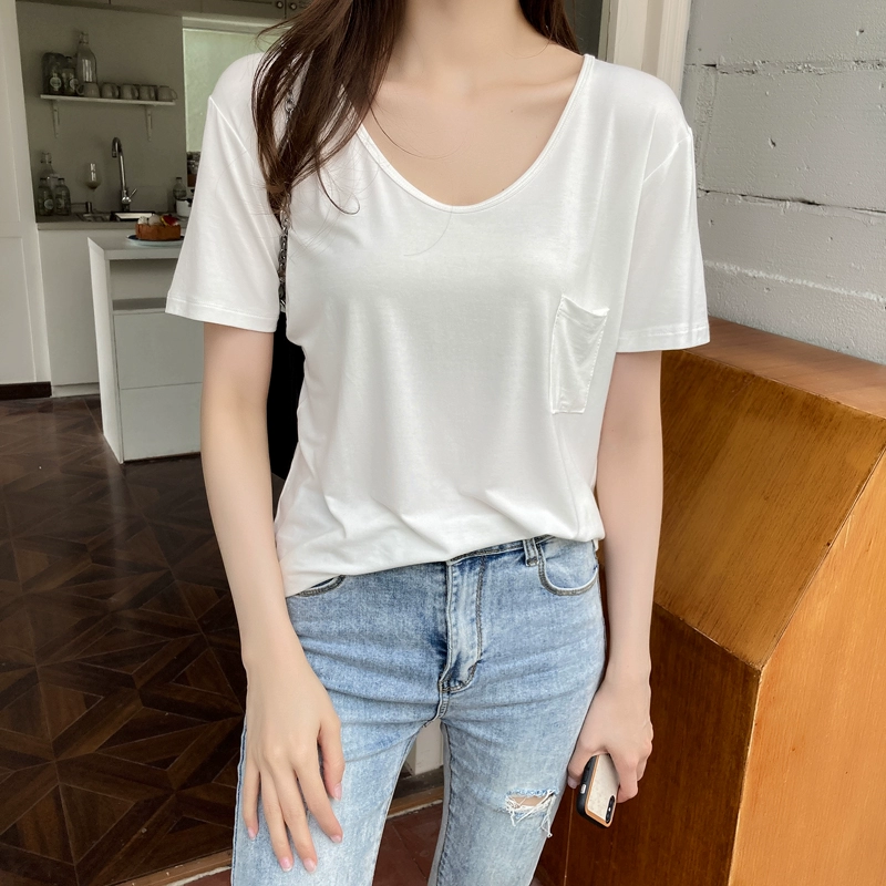 | nameOriginal | White short-sleeved T-shirt for women spring and summer 2024 new Korean version loose slimming sweetheart collar ins trendy modal top |