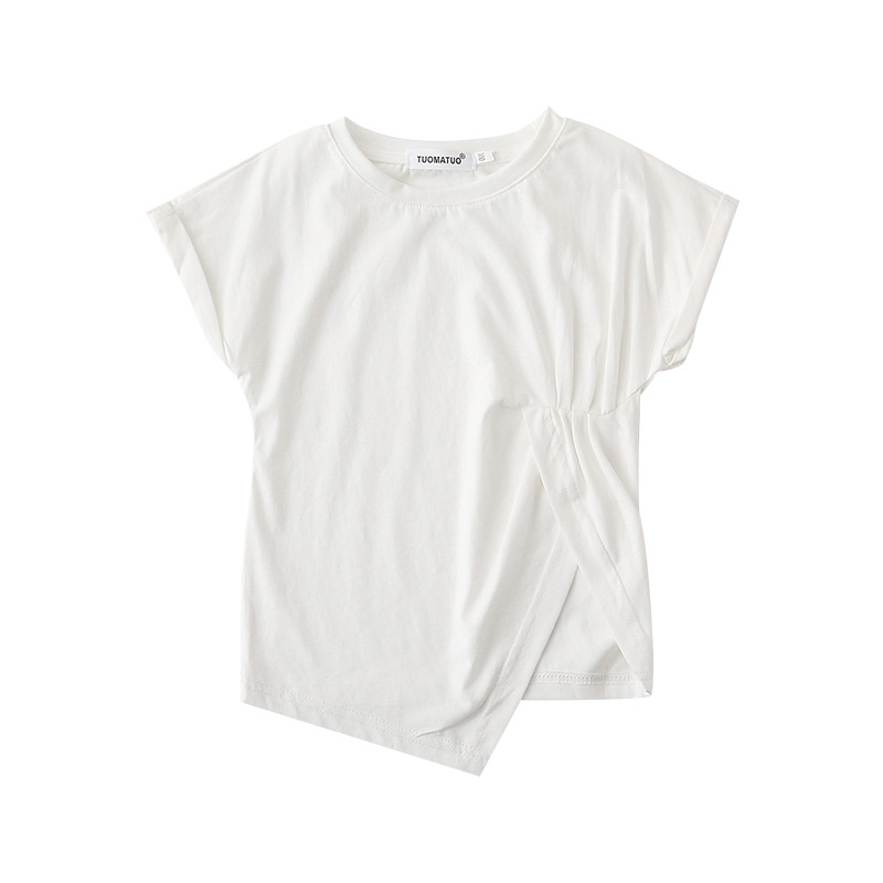 | nameOriginal | White short-sleeved T-shirt for women Summer new slim fit slimming irregular design sense niche female women's clothing solid color all-match short T |