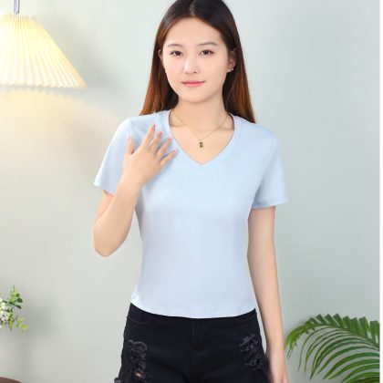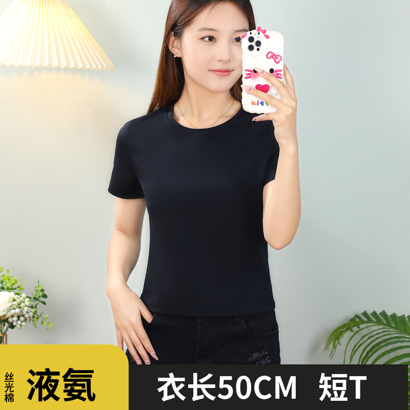 | nameOriginal | White short-sleeved T-shirt women's summer small waist-exposed cotton short top with high waist wide-leg pants European Station small shirt |