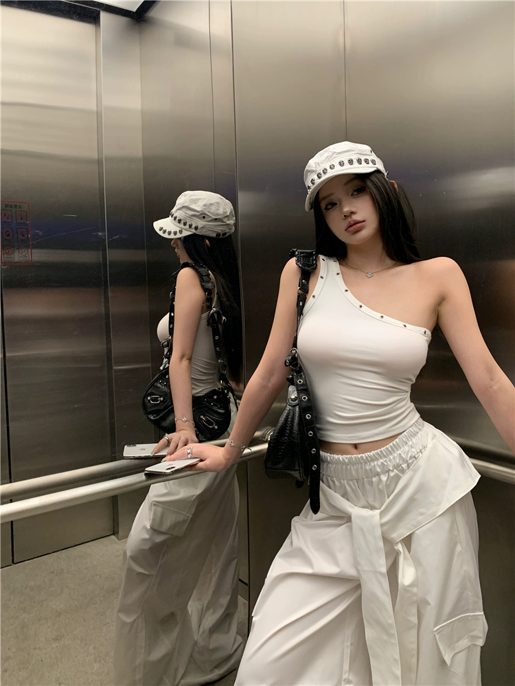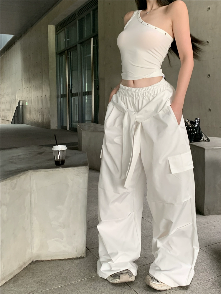 | nameOriginal | White shoulder strap pants casual sports suit |