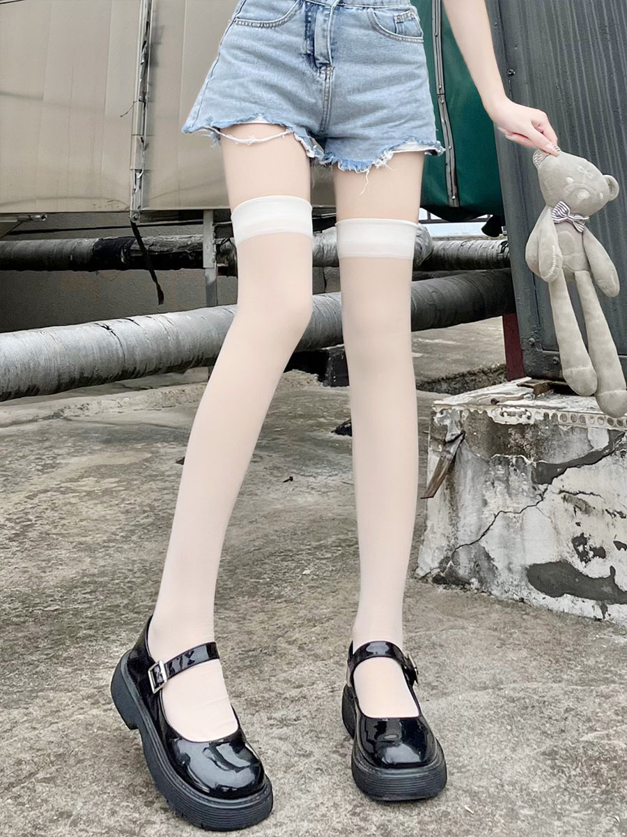 | nameOriginal | White silk knee socks children's summer thin micro-transparent pure sexy thigh socks white high stockings jk stockings |