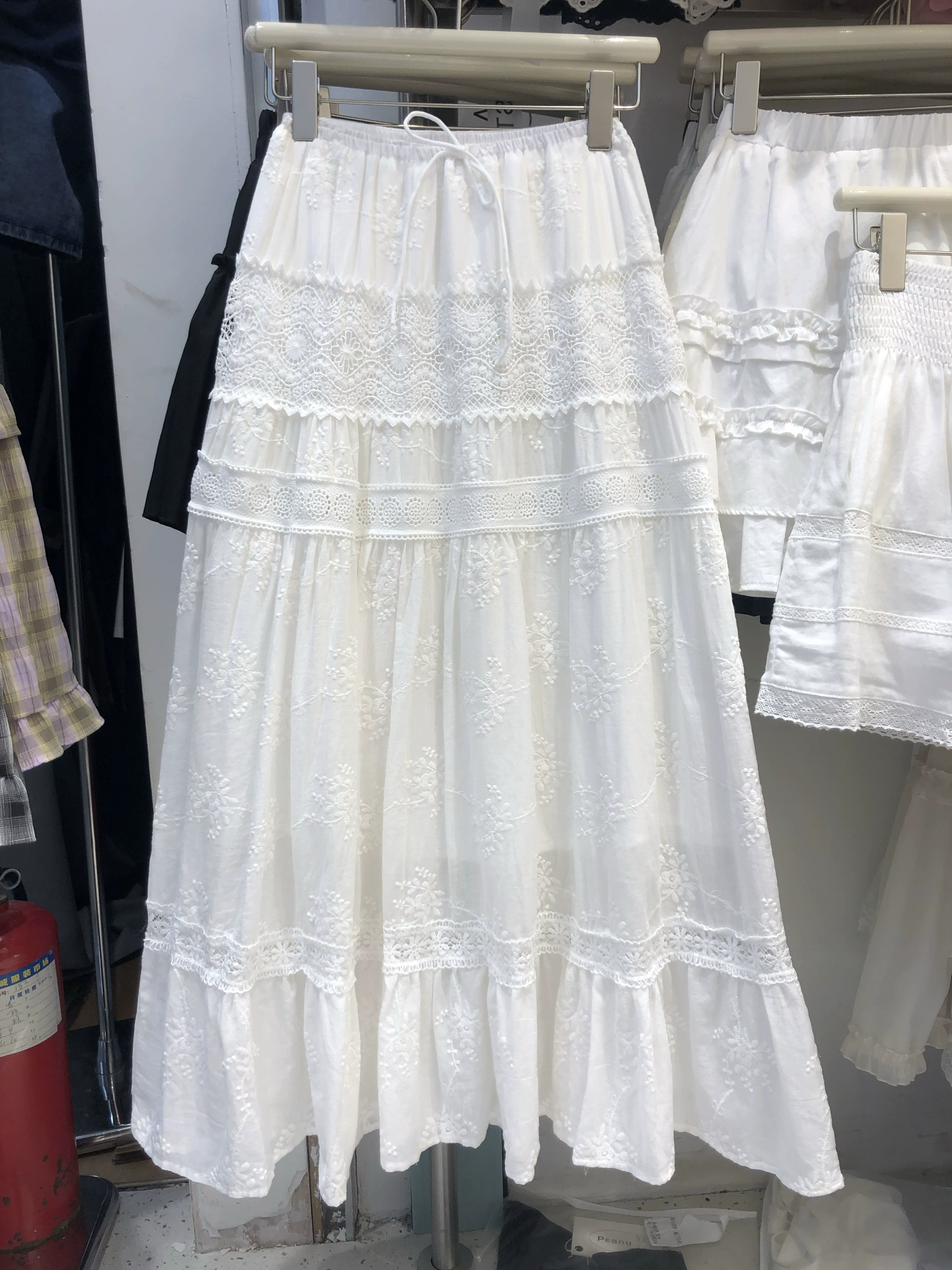 | nameOriginal | White skirt for women in summer, high-end, gentle, French holiday lace stitching, hollow embroidery, long skirt |
