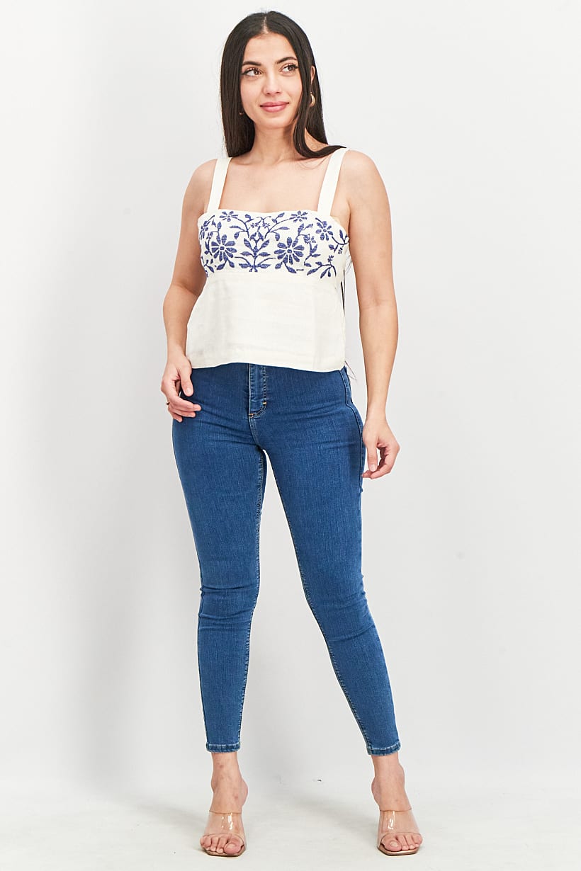 | nameOriginal | Women Square Neck Sleeveless Embroidered Woven Top, White |