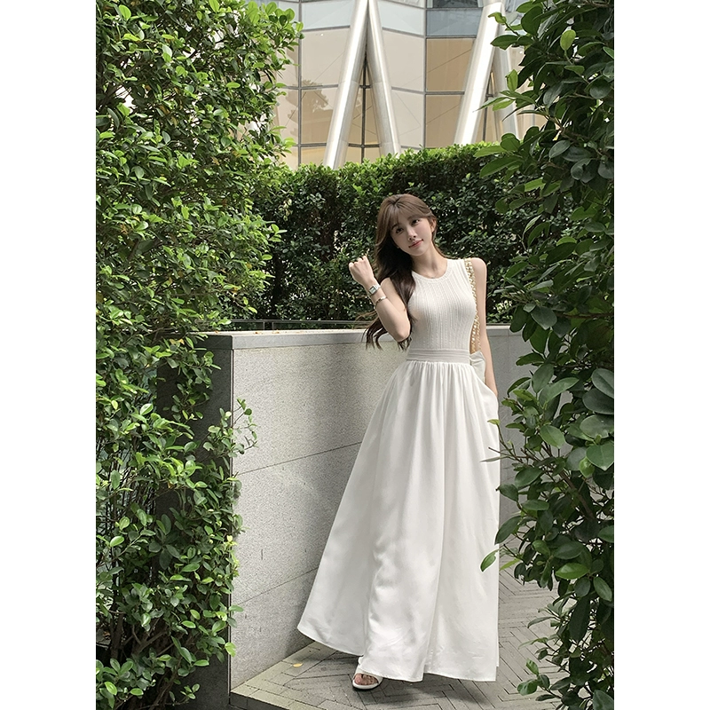| nameOriginal | White sleeveless summer French patchwork long dress |