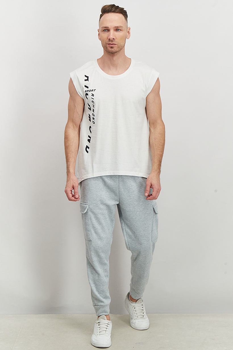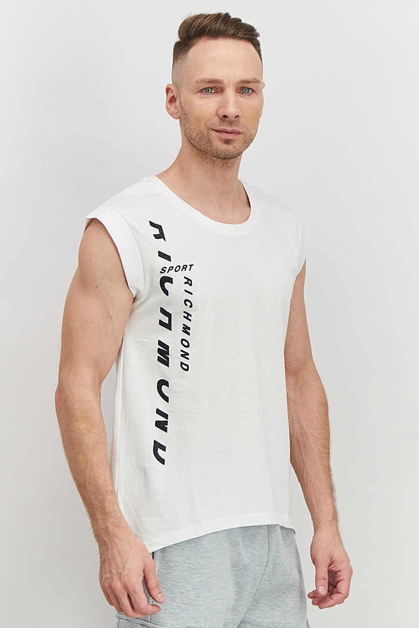 | sub_Categories | Men Clothing, Sportswear, men sport fit round neckline brand logo sleeveless tank white |