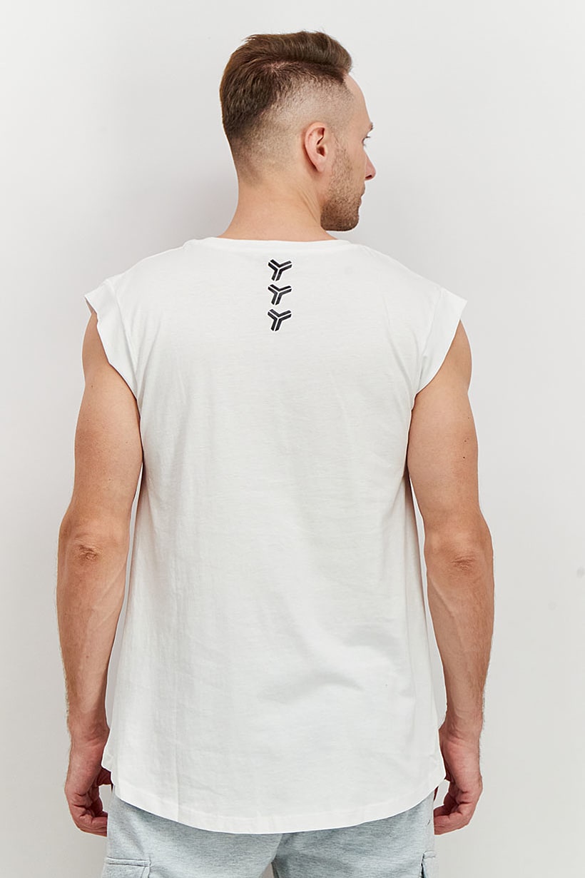 | nameOriginal | Men Sport Fit Round Neckline Brand Logo Sleeveless Tank, White |
