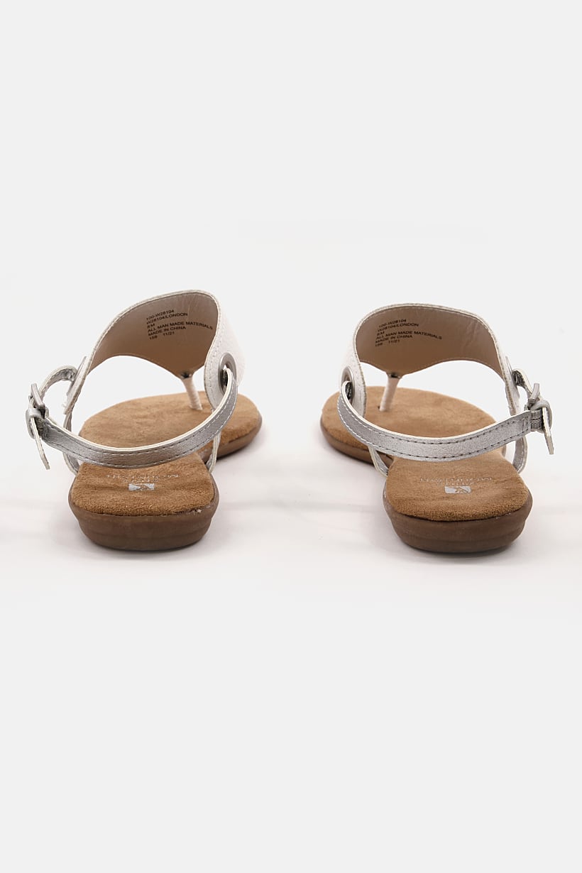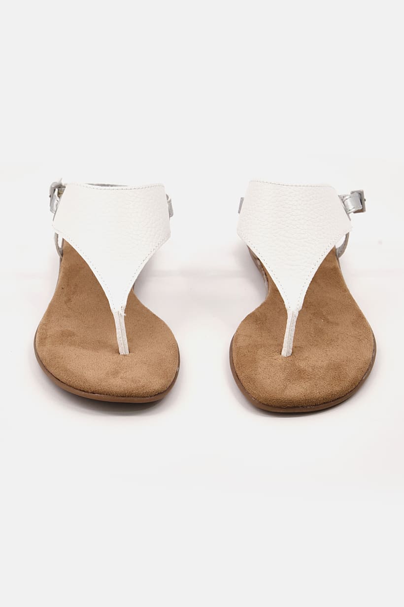 Heel Height : 1" / 2.5 cm, Ideal For : Women, Shoe Closure : Slingback, Sole Material : Rubber sole, Toe Style : Open toe, Disclaimer : Product color may slightly vary due to photographic lighting sources or your monitor settings., Occasion : Casual, Shoe Material : Leather, Color Family : White, Heel Style : No heel,