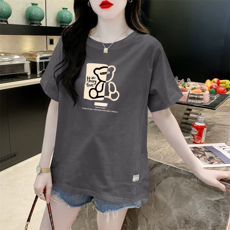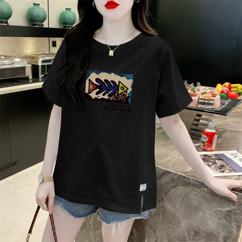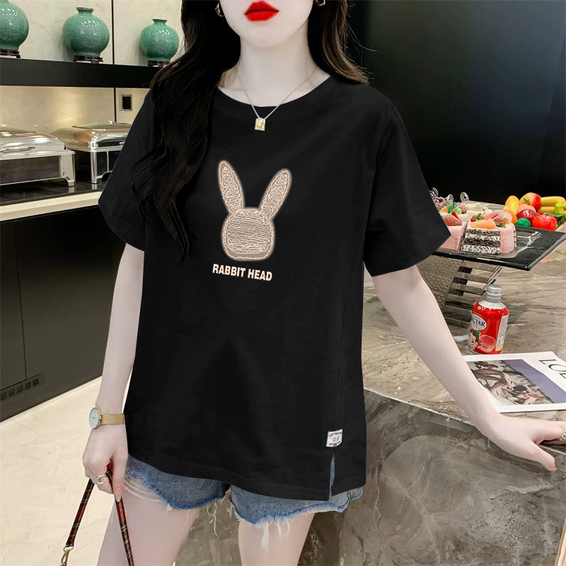 White slit cotton summer loose short-sleeved T-shirt