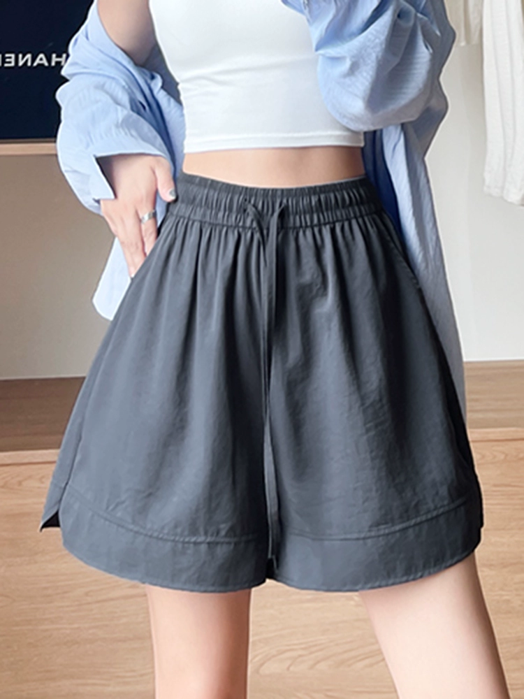 | nameOriginal | White slit wide-leg high-waist drawstring A-line ins shorts |