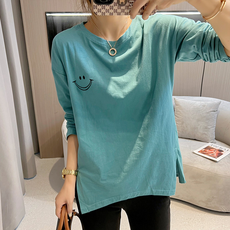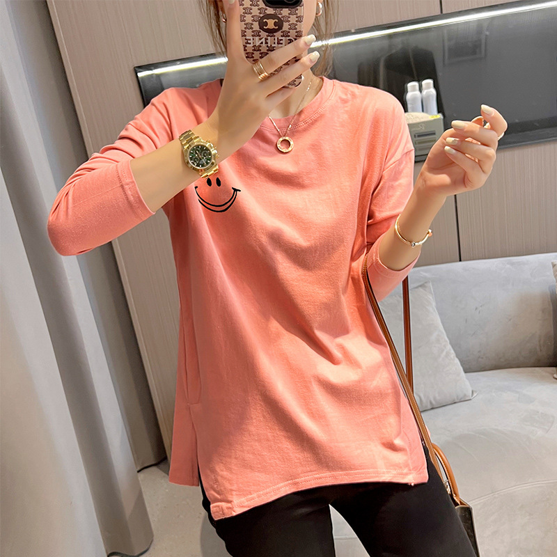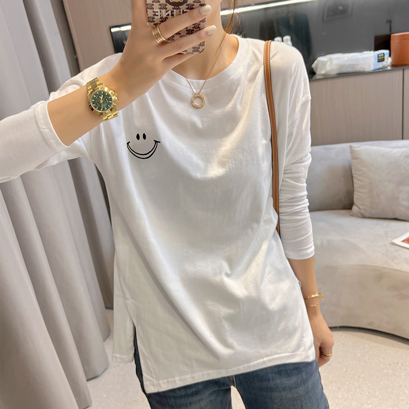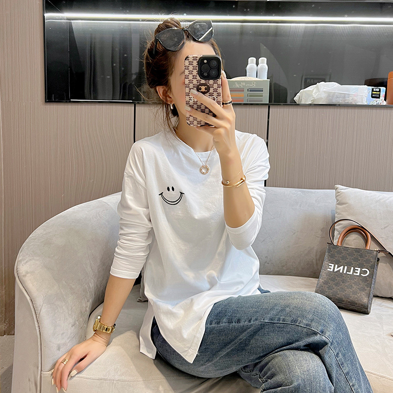 | nameOriginal | White Smiley printed long-sleeved T-shirt for women 2023 spring and autumn thin loose split undershirt niche top |