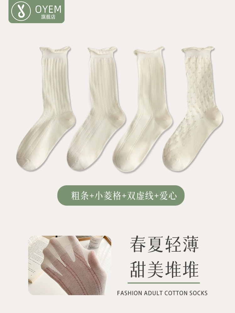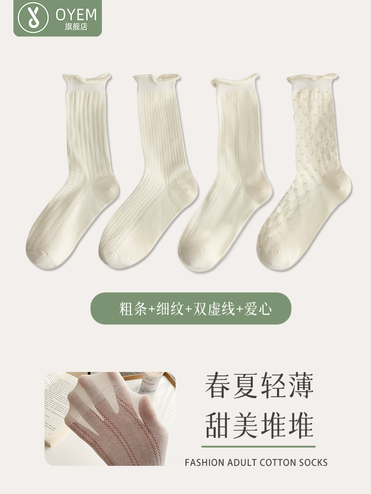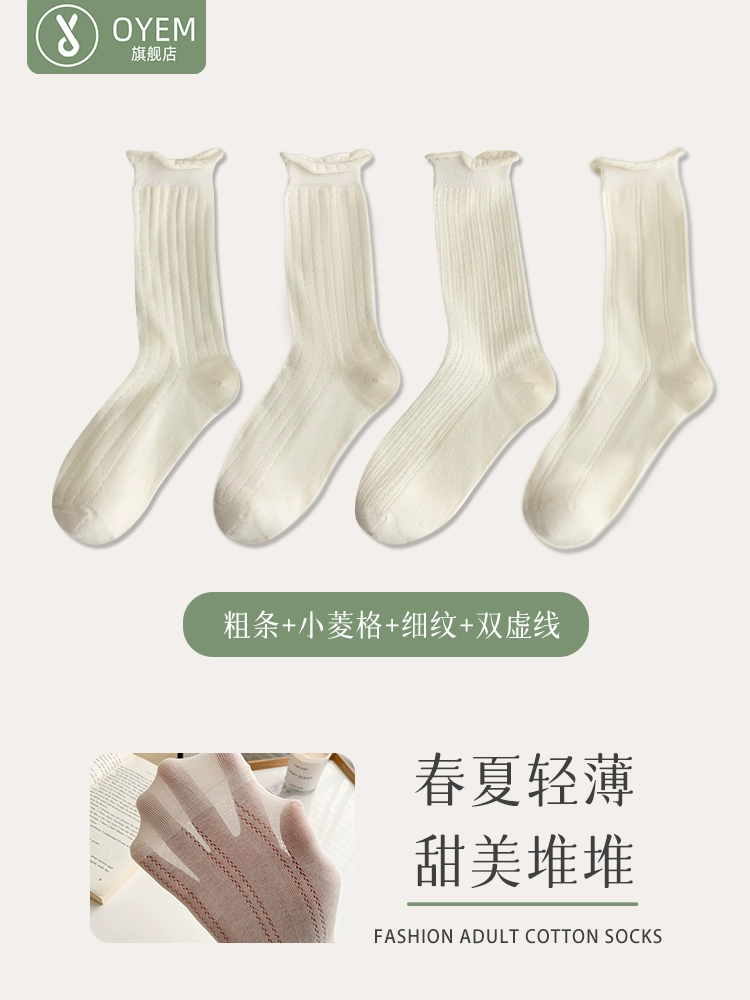 | nameOriginal | White socks for women in spring and summer, mesh thin miu style curled hem pile socks Japanese college style slimming JK stockings |