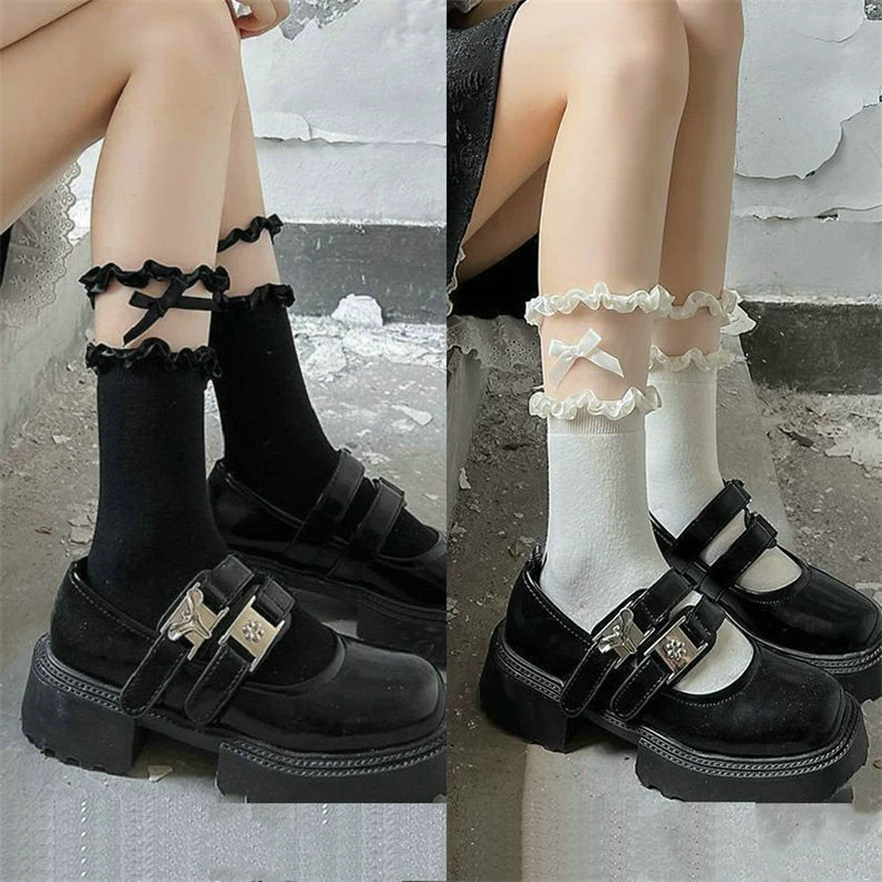 | nameOriginal | White socks women's mid-calf lace summer bow jk Lolita Mary Jane shoes outer wear trendy ins lace socks |
