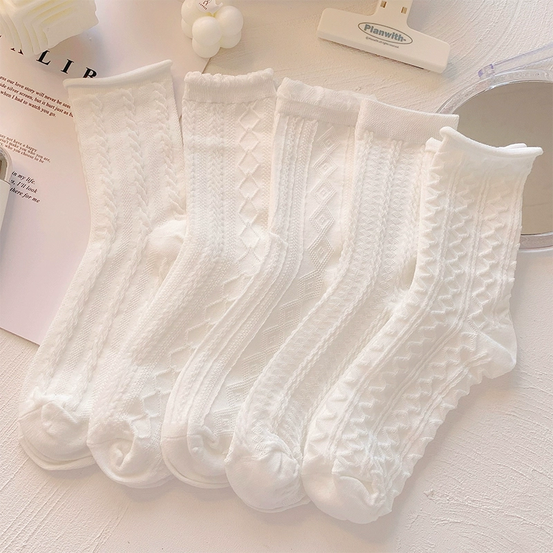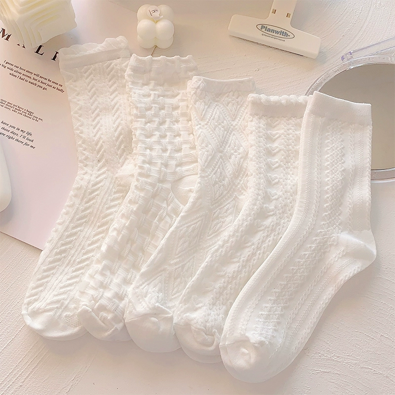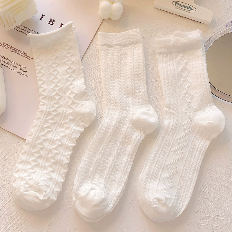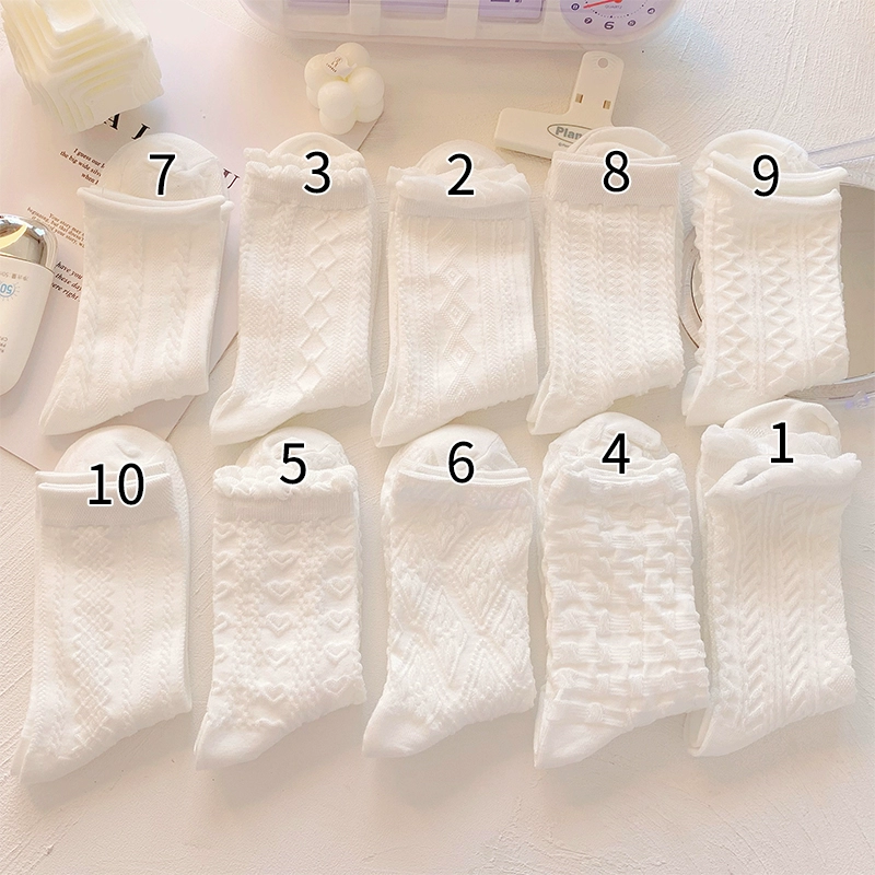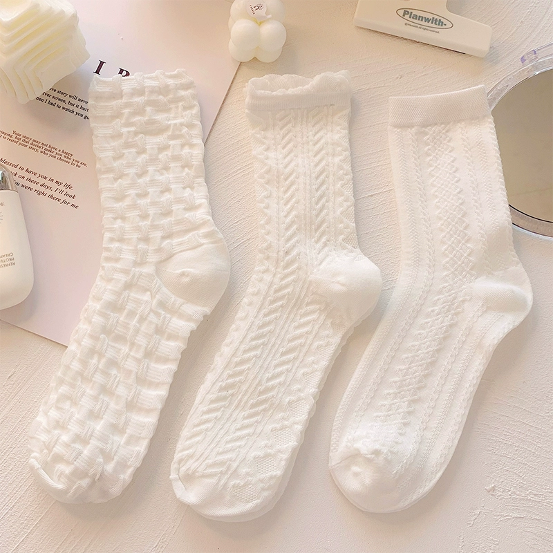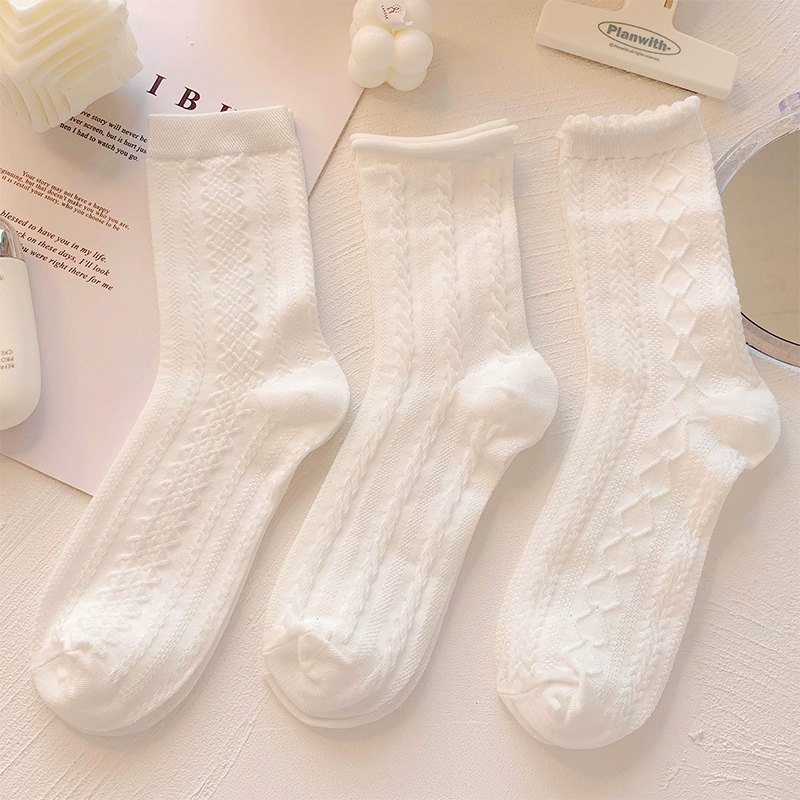 | nameOriginal | White socks women's mid-calf socks ins trendy jk Japanese style sweet and versatile student wear spring, autumn and winter solid color stockings |