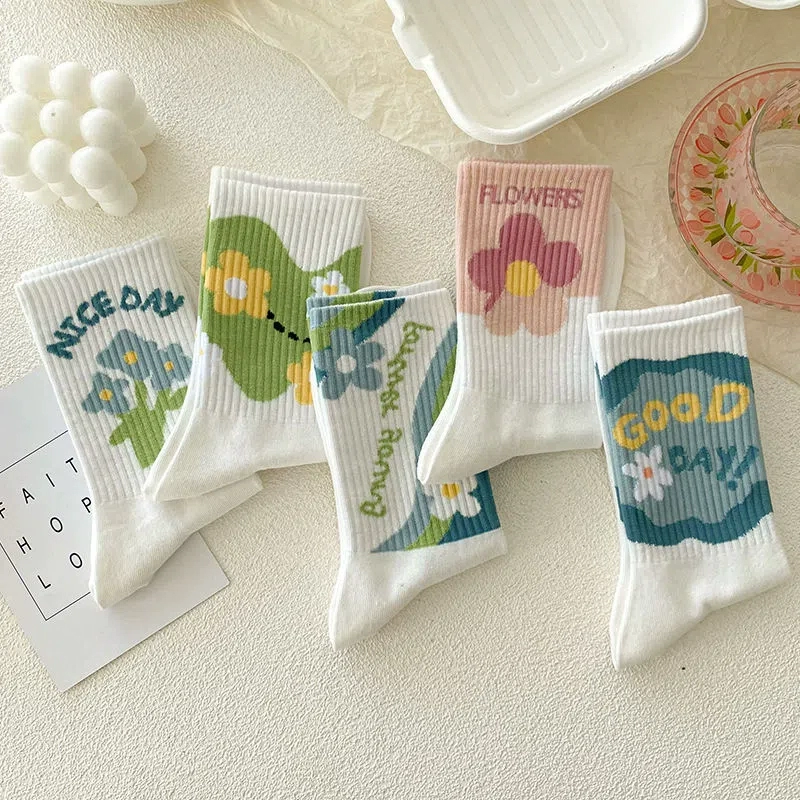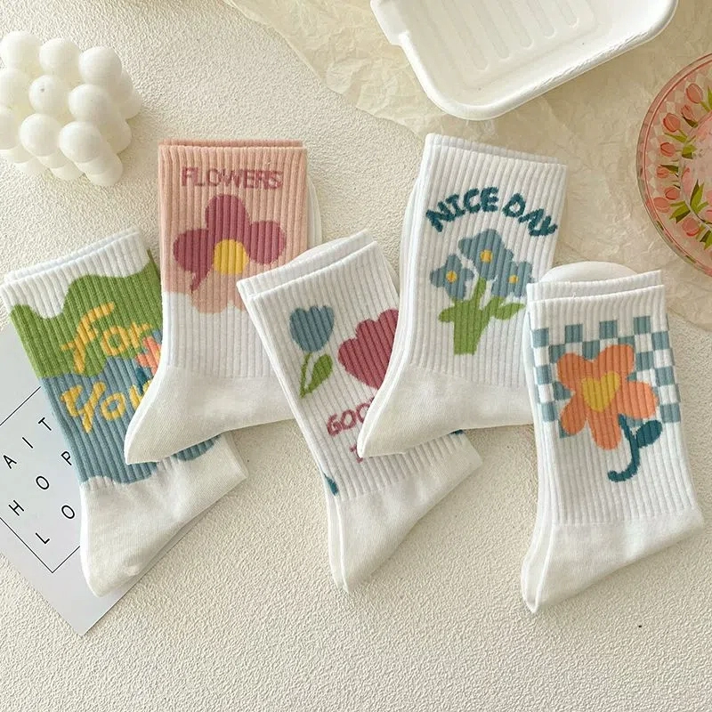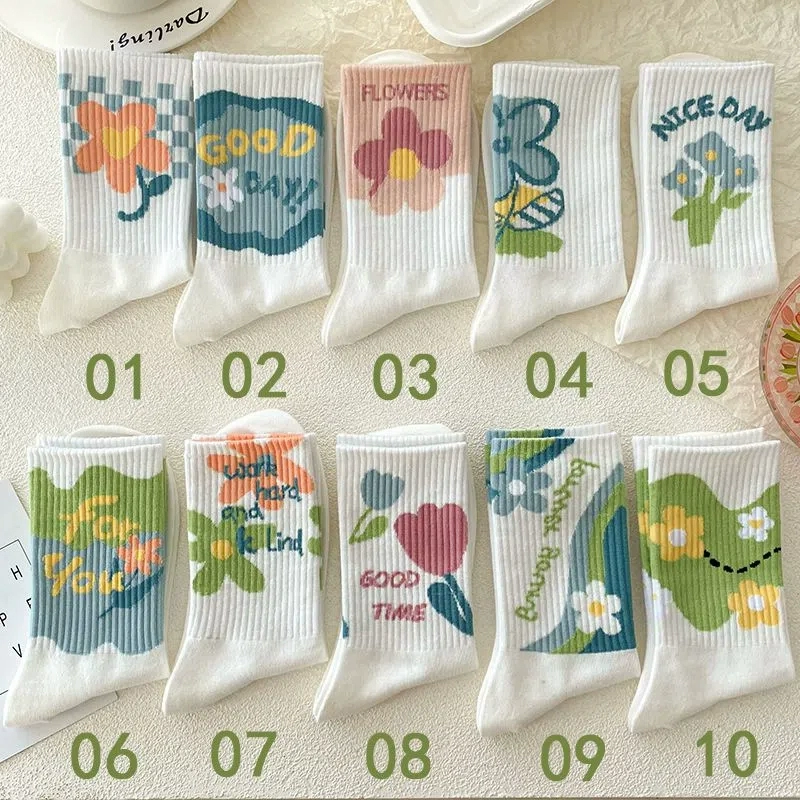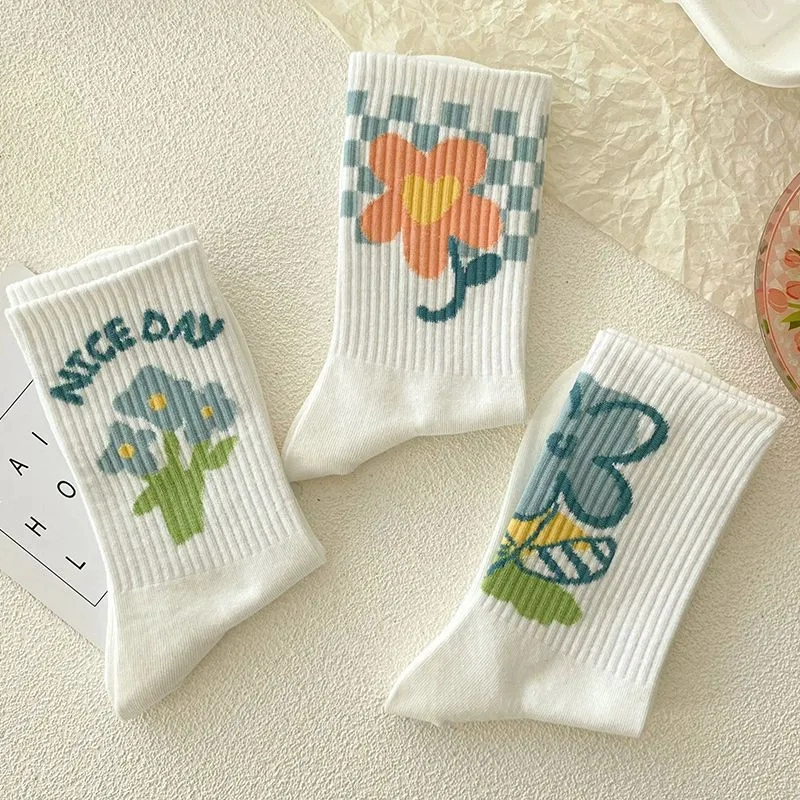 | nameOriginal | White socks women's mid-calf summer thin ins fashion versatile simple Japanese flower student sports spring and autumn stockings |
