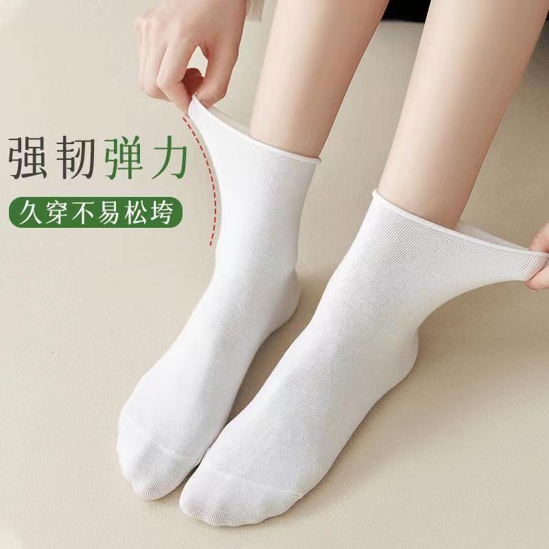 White socks women's summer Spring and Autumn Mid-tube socks spring and autumn black cotton socks piled socks Japanese thin curly stockings