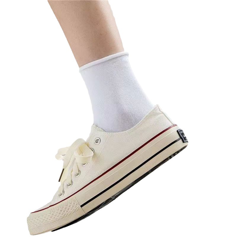 White socks women’s summer Spring and Autumn Mid-tube socks spring and autumn black cotton socks piled socks Japanese thin curly stockings