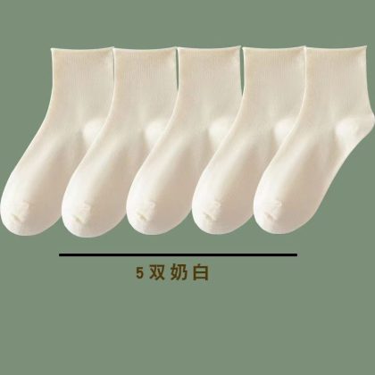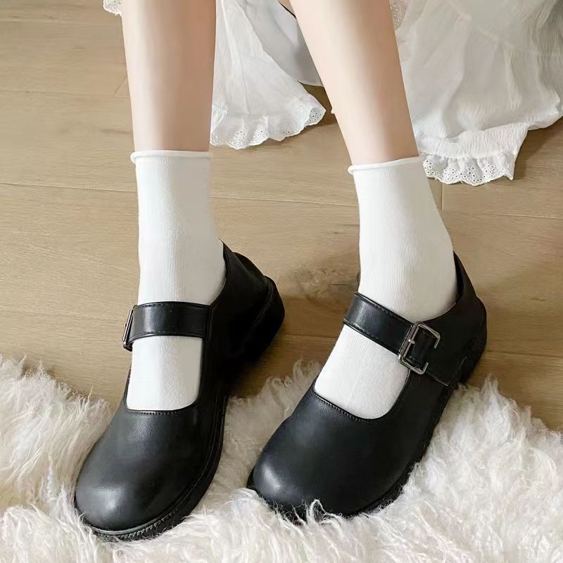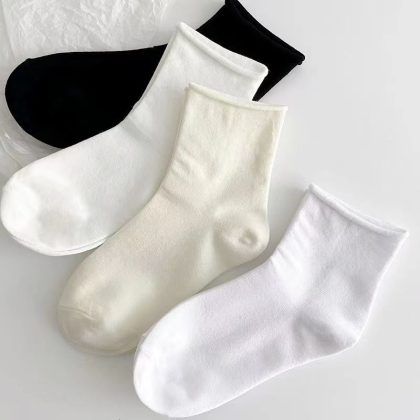 White socks women’s summer Spring and Autumn Mid-tube socks spring and autumn black cotton socks piled socks Japanese thin curly stockings