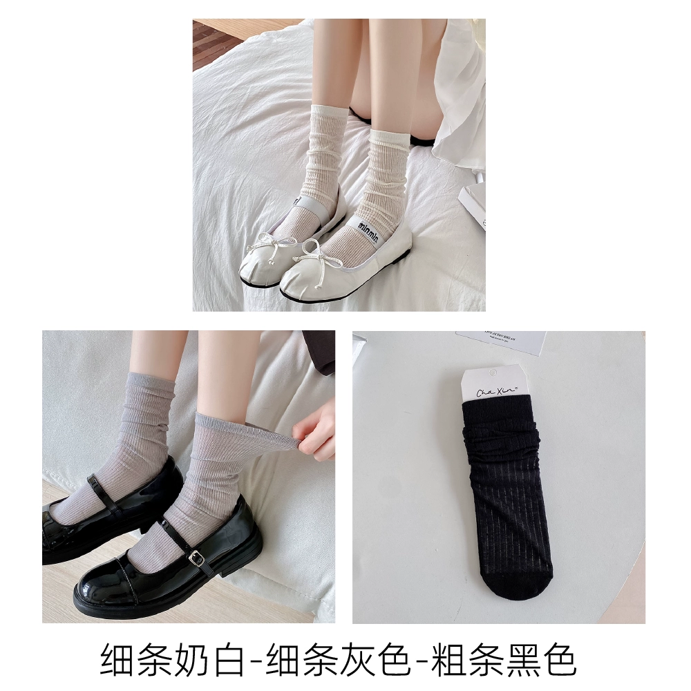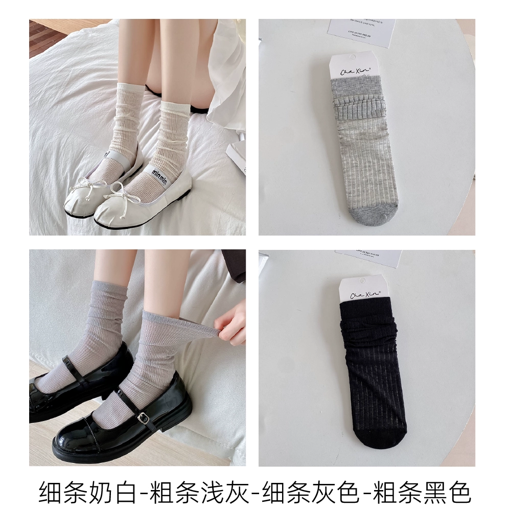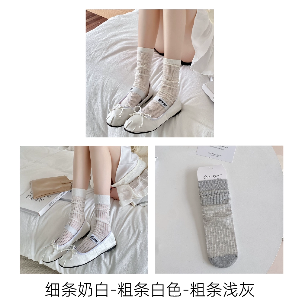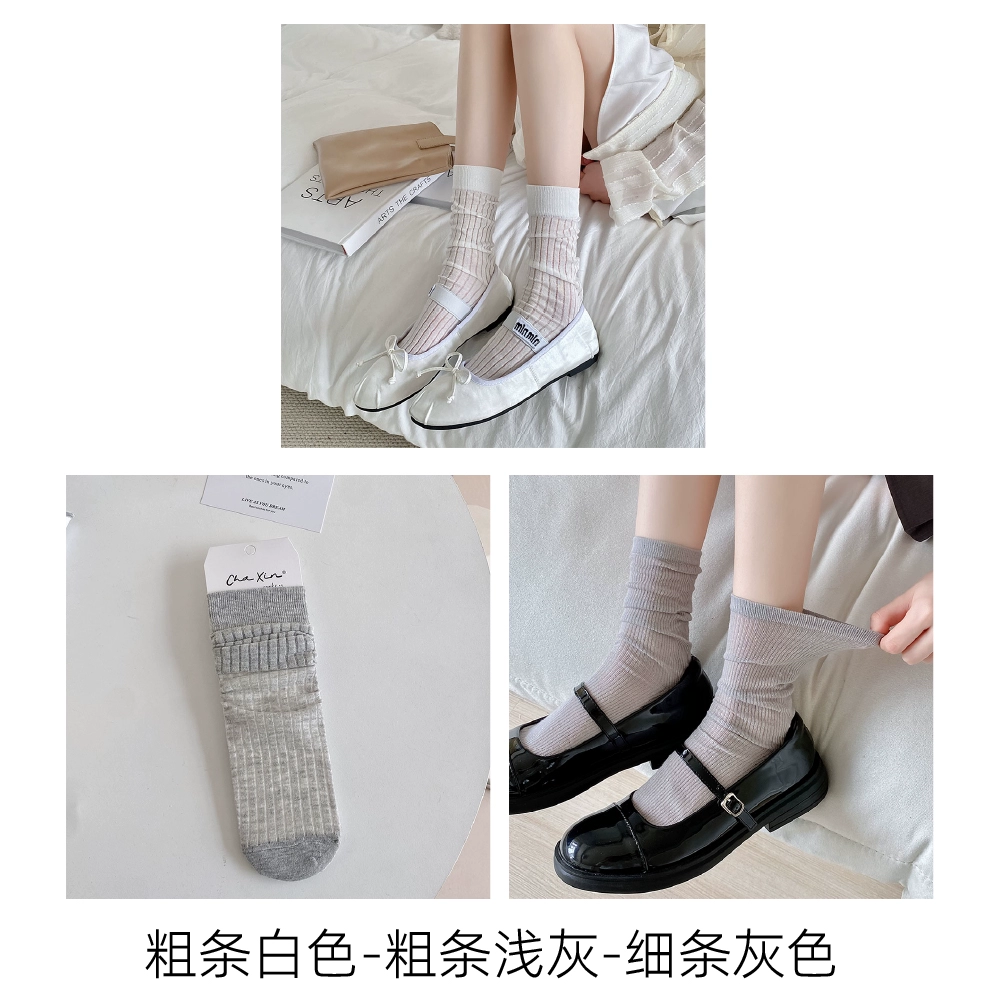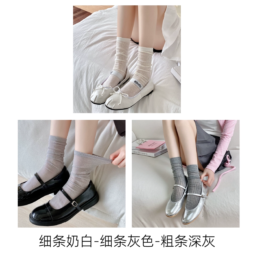 White socks women's summer thin mid-calf socks Japanese style ins trendy jk with Mary Jane shoes gray miu wind pile socks