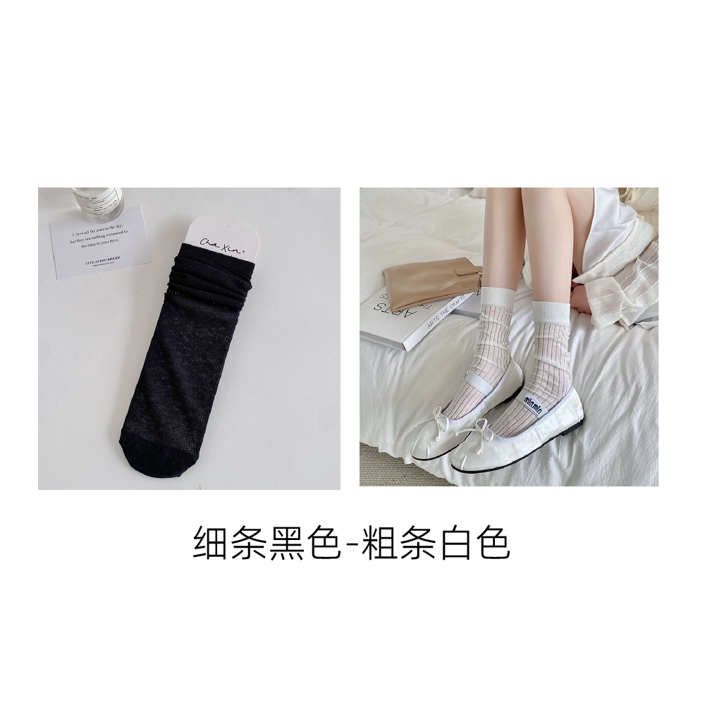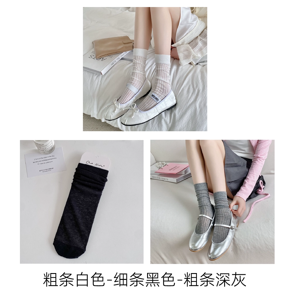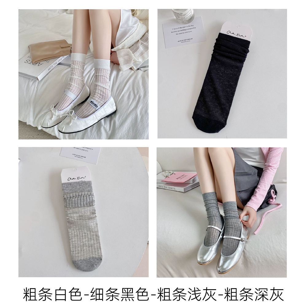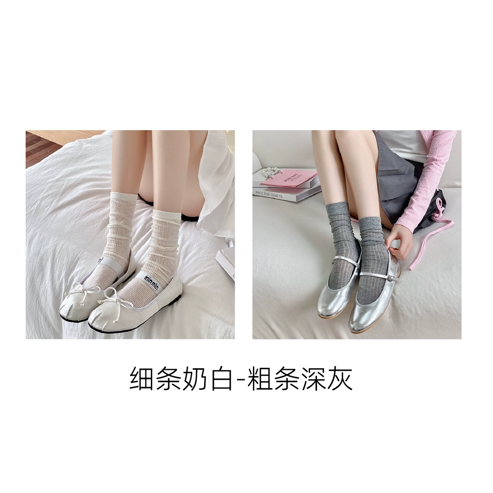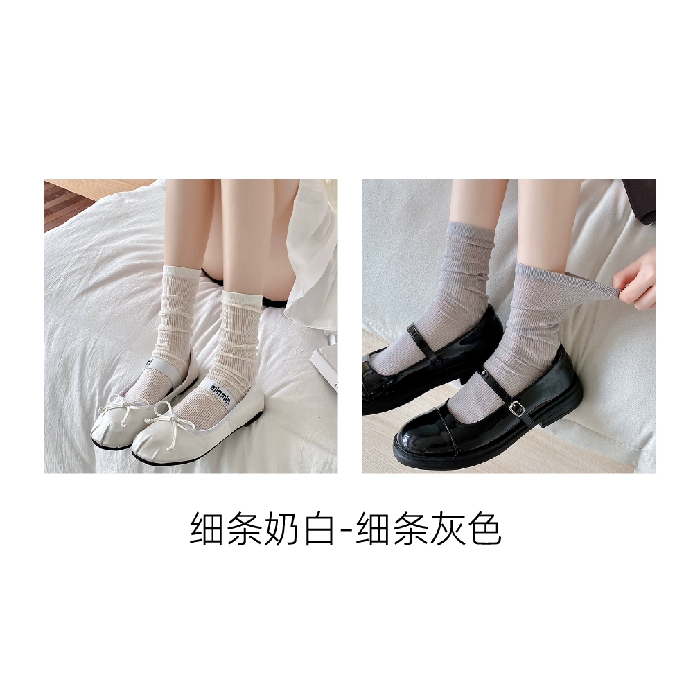 White socks women's summer thin mid-calf socks Japanese style ins trendy jk with Mary Jane shoes gray miu wind pile socks