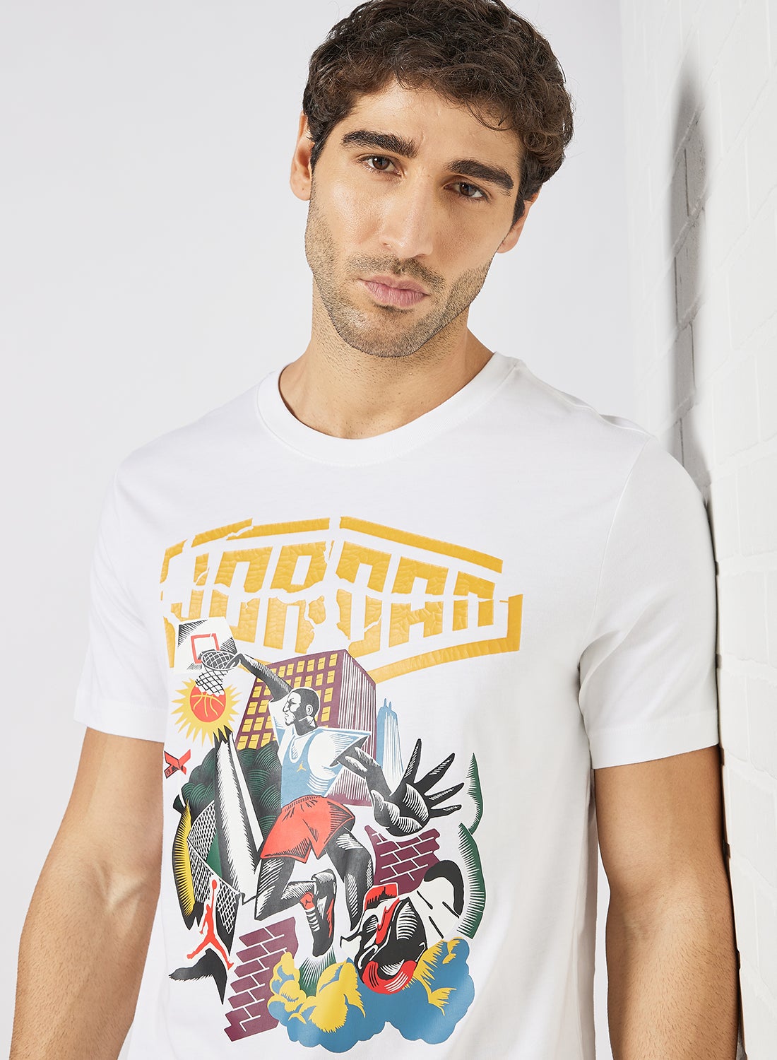 This product features a soft and airy cotton material that provides maximum comfort. It has a classic crew neckline and short sleeves for a timeless look. The regular fit allows for unrestricted movement. To maintain its quality, please follow the care label instructions when washing. Additionally, this item showcases the iconic Jordan branding for a stylish touch.