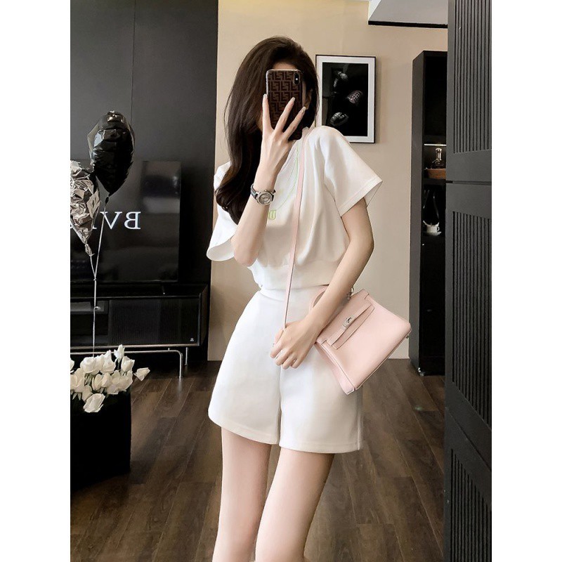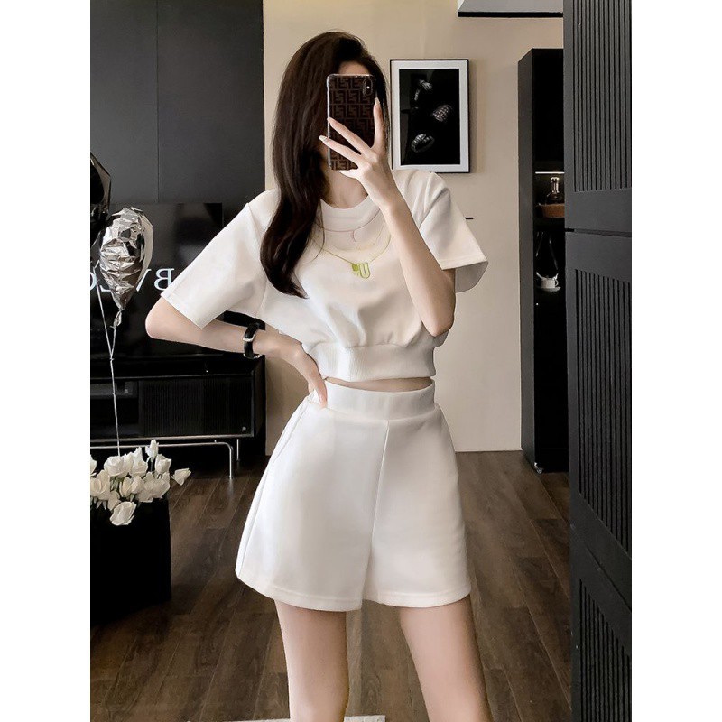 | nameOriginal | White Sports Casual suit Women's Summer Small Loose Age-reducing Slimming Western Style Street Short-sleeved Shorts Two-piece Set |