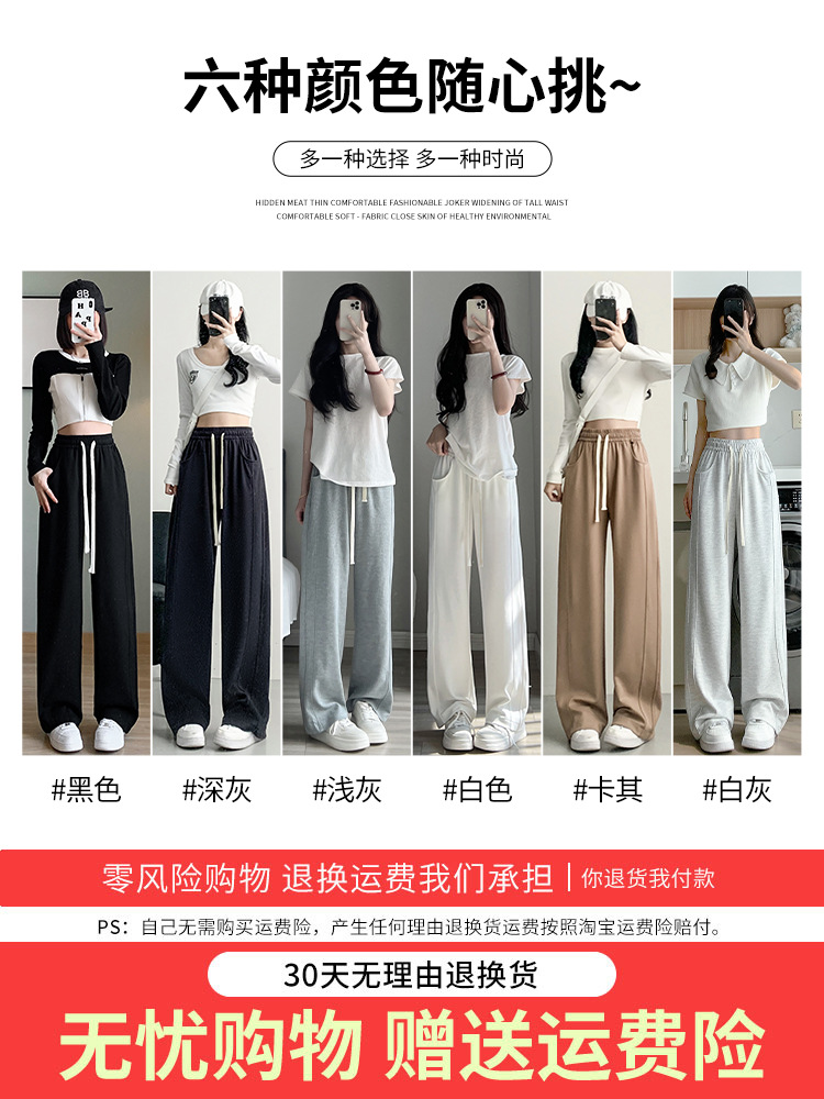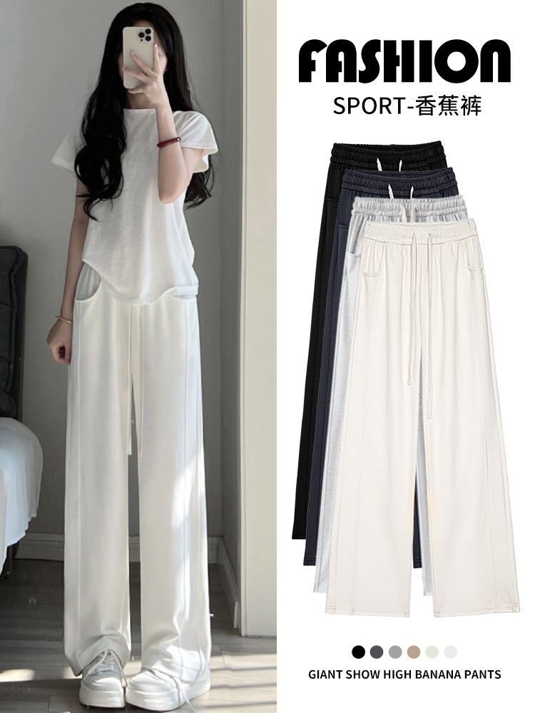 | nameOriginal | White Sports Pants Women's Summer 2024 New High Waist Dummy Straight Wide Leg Pants Small Casual Loose Sweatpants |