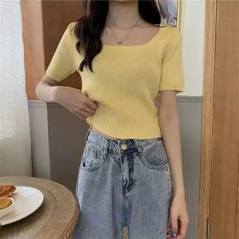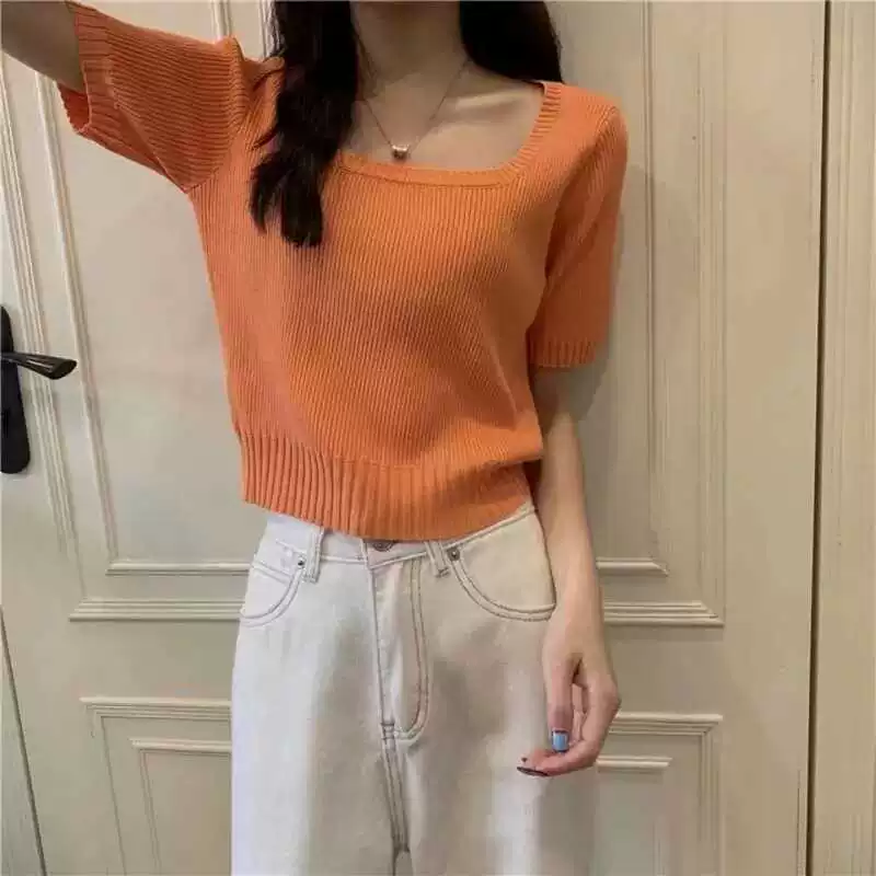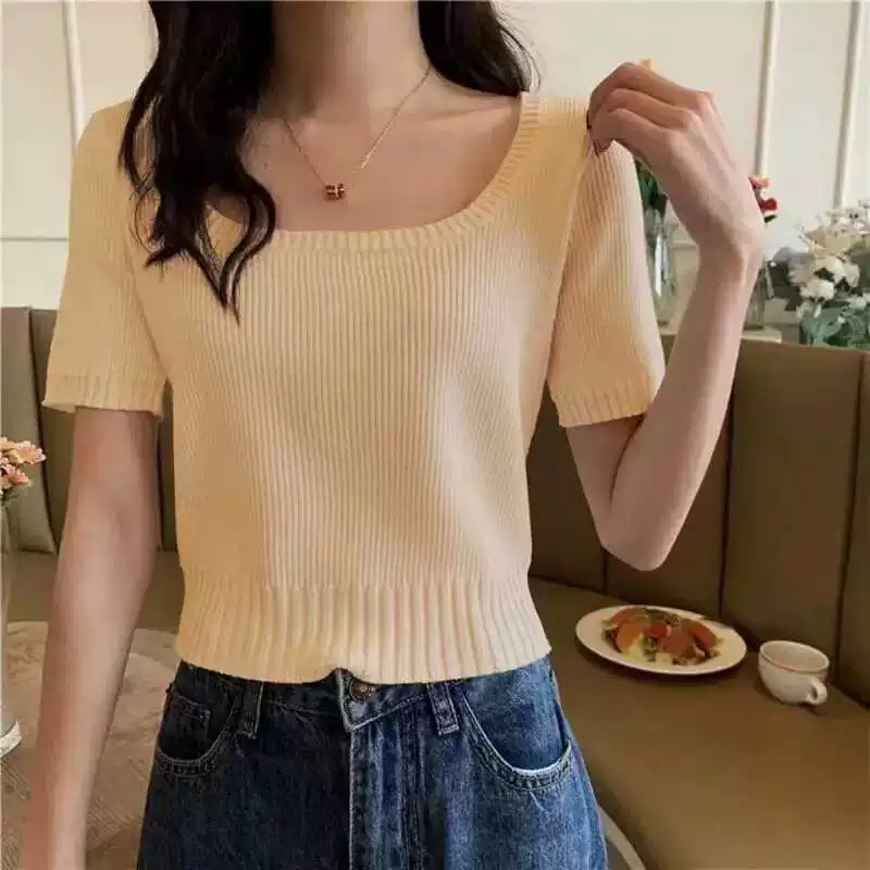 | nameOriginal | White square neck design niche fashionable knitted short sleeves |