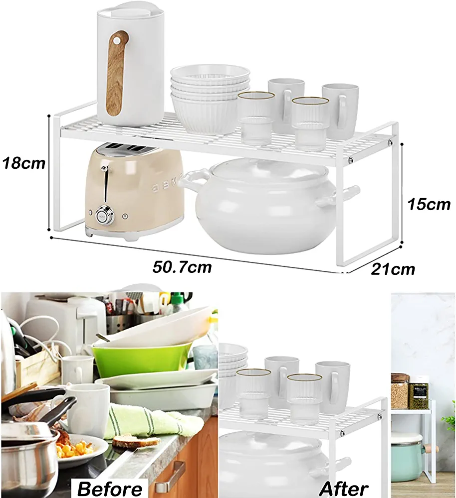 | nameOriginal | GGEROU Stackable Kitchen Storage Shelves,Cabinet Shelf Organizers, Cupboard Stand Spice Rack,Cabinet Layered Shelf Rack,Countertop Storage Rack For Kitchen Bathroom Countertop Pantry (Low, White) |