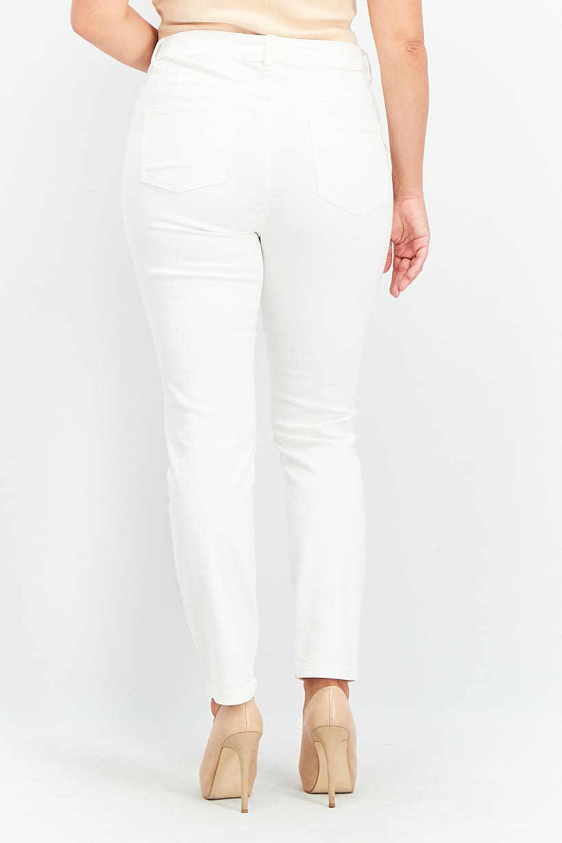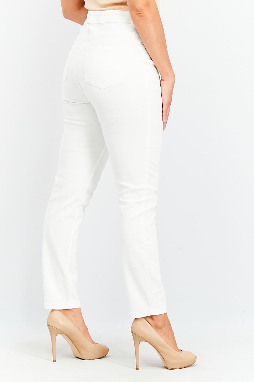| descriptionOriginal | Bottom Hem : Straight, Care : Machine washable, Fit : Slim fit, Ideal For : Women, Leg Style : Regular, Bottom Closure : Zipper fly, Buckle closure, Bottom Style/Pattern : Belt loops, Five pocket style, Disclaimer : Product color may slightly vary due to photographic lighting sources or your monitor settings., Fabrics : 91% Organic Cotton, 7% Elastomultiester, 2% Elastane, Occasion : Casual, Pattern & Print : Plain/Solid, Color Family : White, |