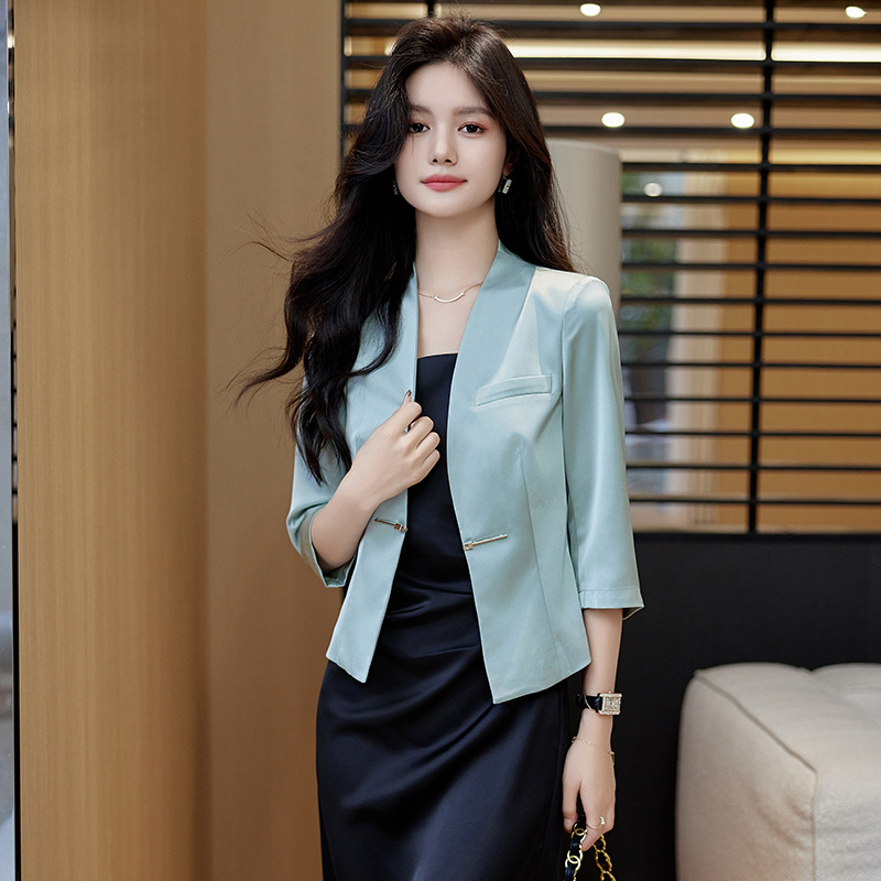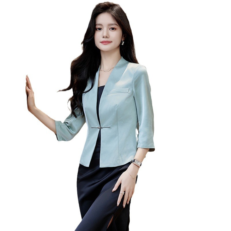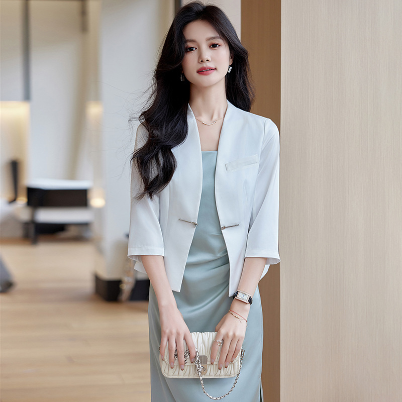 | nameOriginal | White Suit Jacket Women's Spring and Summer 2024 New Collarless Acetic Acid Satin New Chinese Style National Style Short Suit Top |