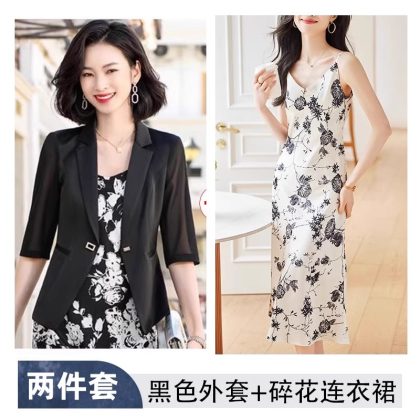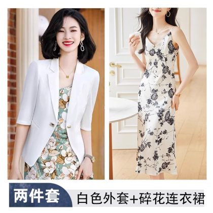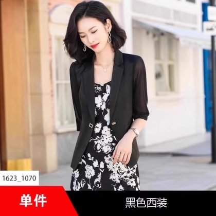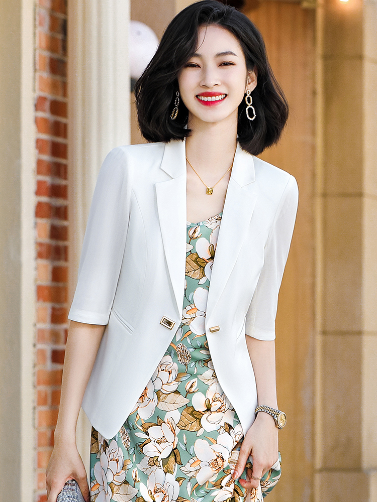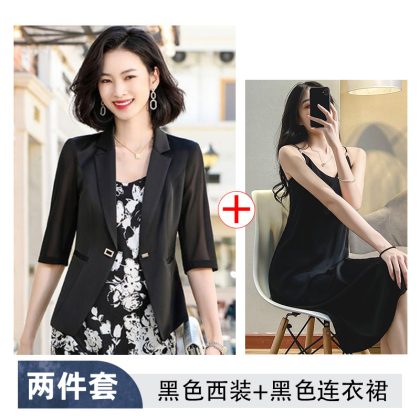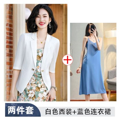 White Suit Jacket Women’s Summer Thin Women’s Casual Sunscreen Chiffon Mesh Suit with Slip Skirt suit