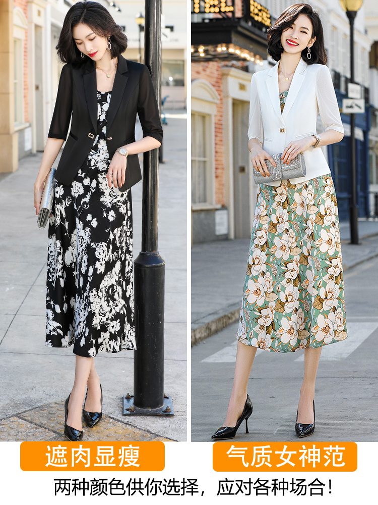 White Suit Jacket Women's Summer Thin Women's Casual Sunscreen Chiffon Mesh Suit with Slip Skirt suit