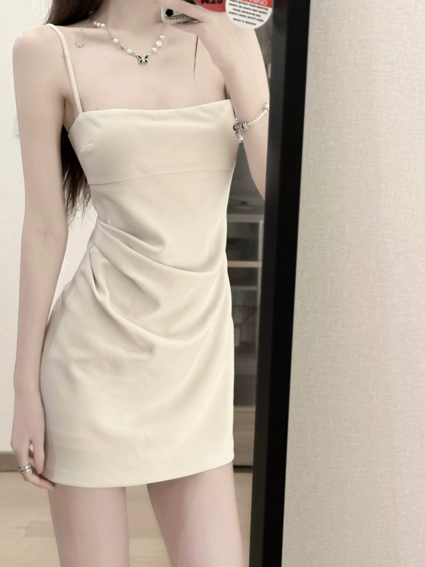 | nameOriginal | White summer high-end slim fit hip-hugging suspender dress |