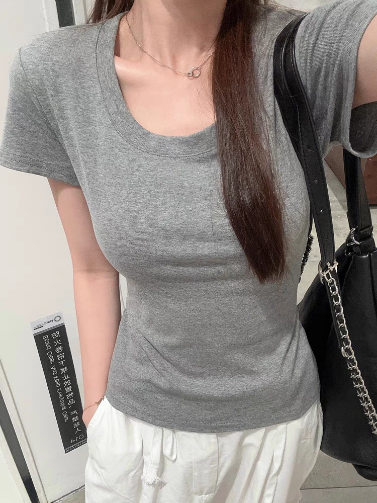 White summer slim fit shoulder design niche short sleeves