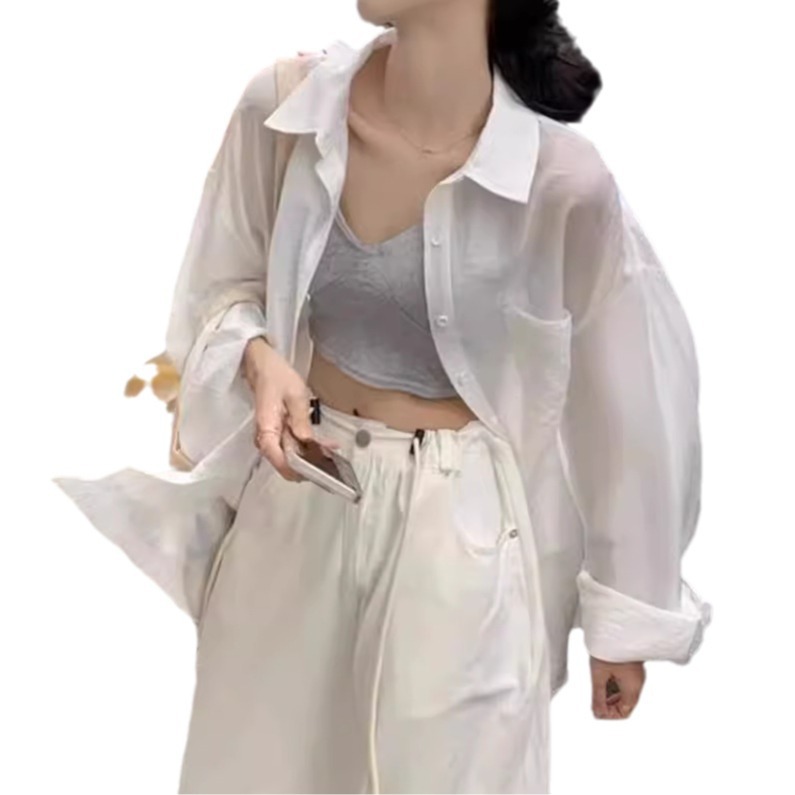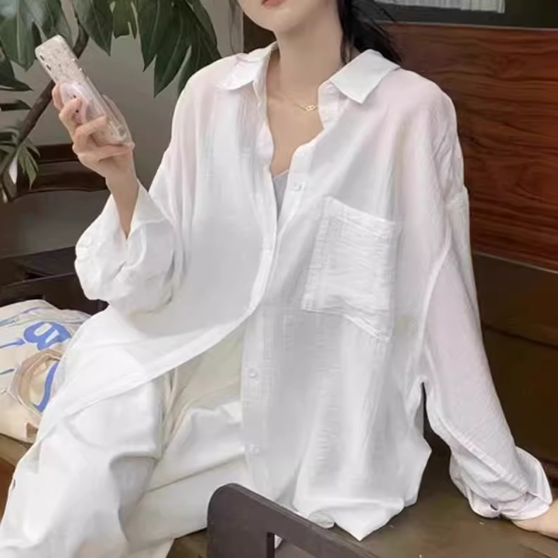 | nameOriginal | White Sunscreen Long-sleeved Shirt Women's Summer Outer Chiffon Top High-grade Sense Loose All-match Thin Shirt |