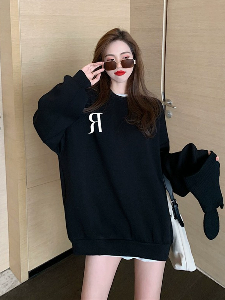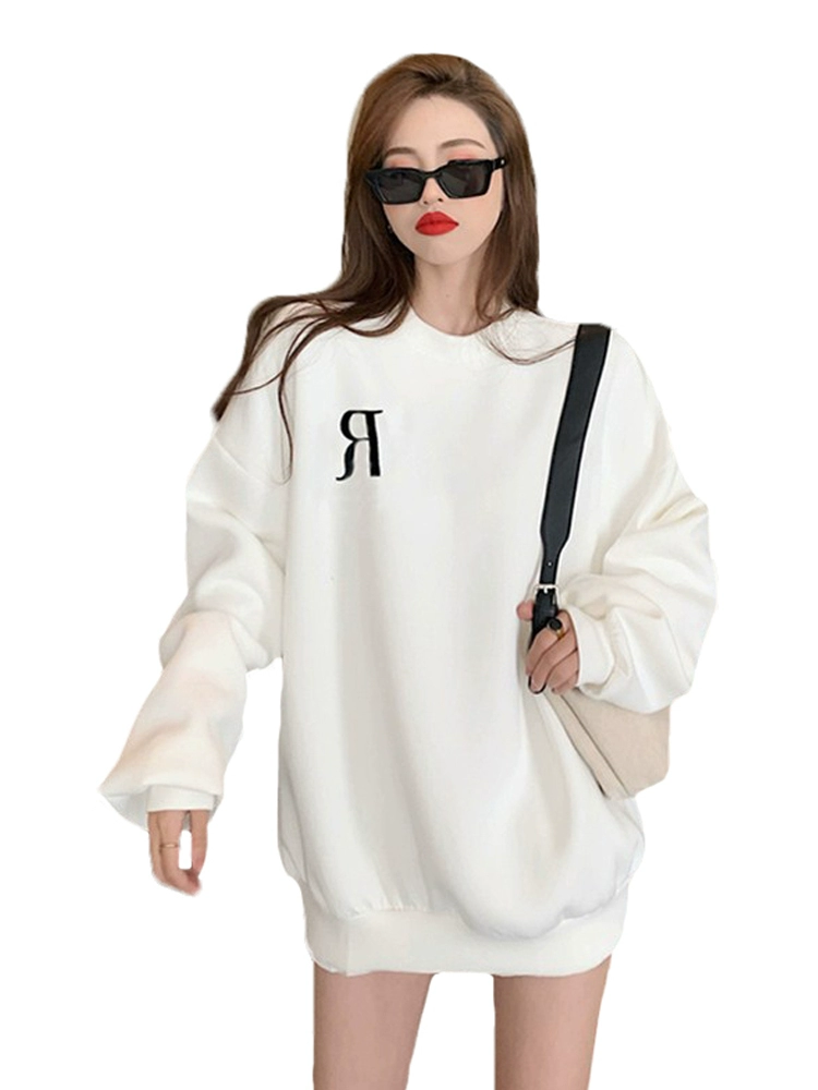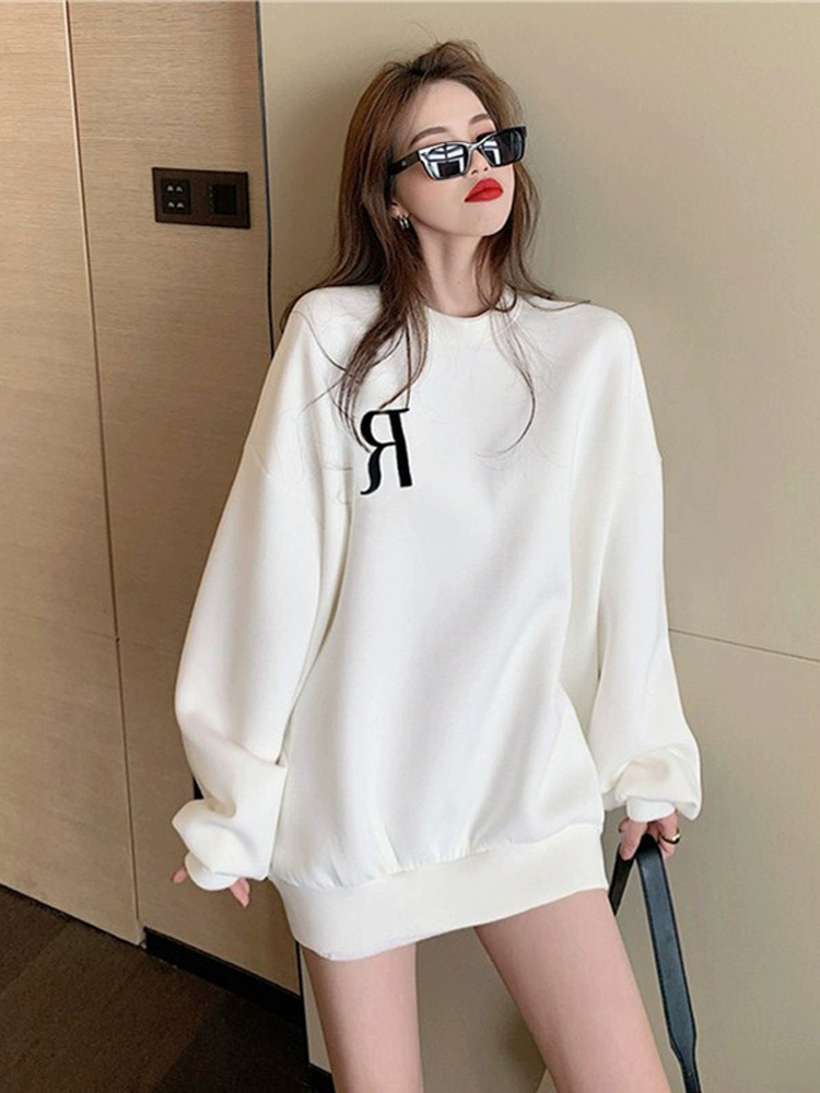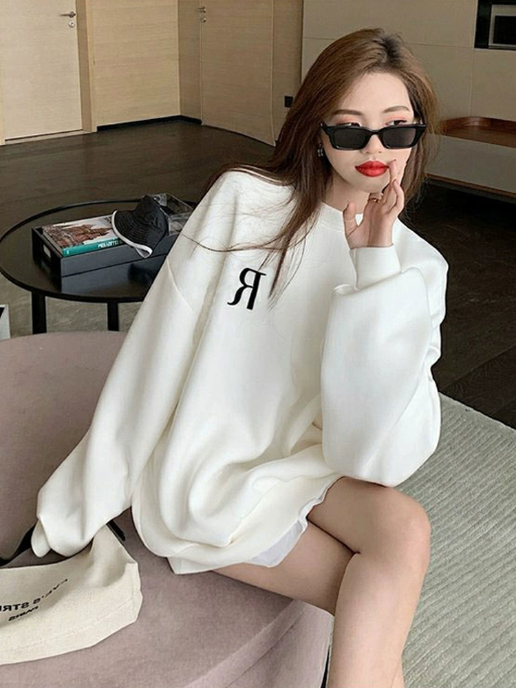 | nameOriginal | White sweatshirt for women in autumn and winter plus velvet loose style 2024 new trendy brand spring American style lazy style thin jacket |