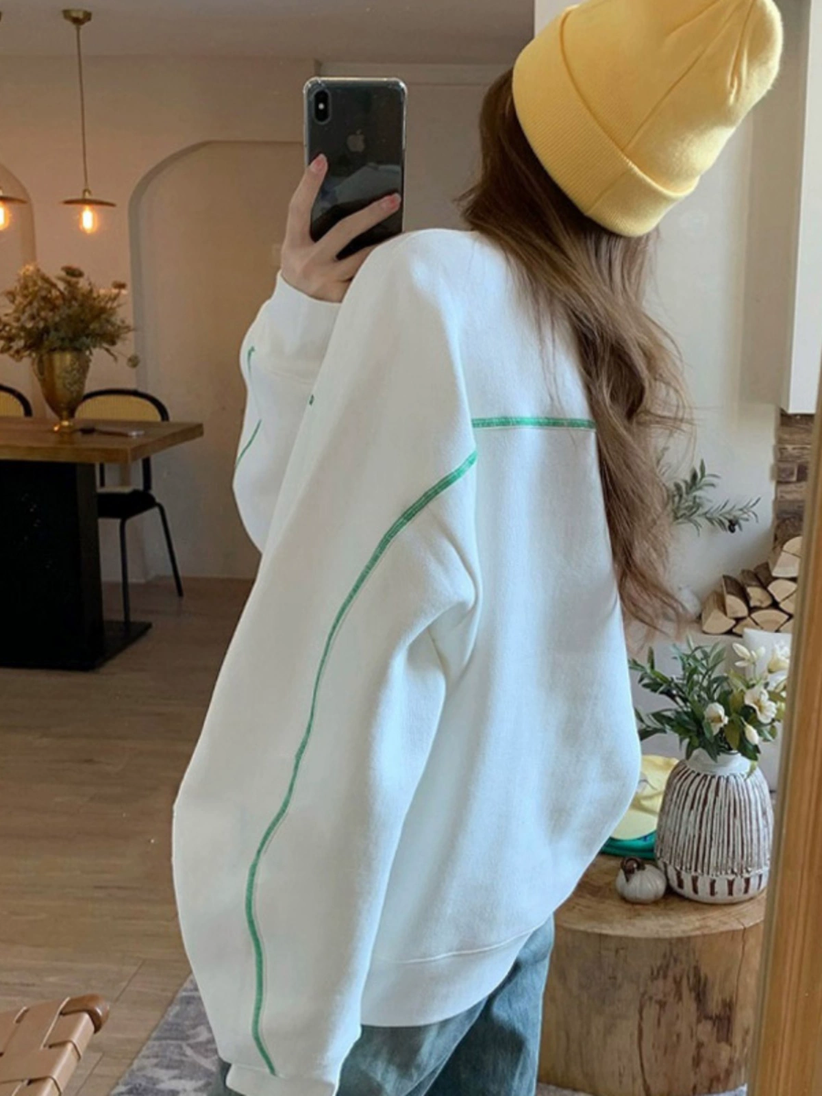 | nameOriginal | White sweatshirt for women spring, autumn and winter 2024 new style American loose velvet top oversize thin jacket trendy |