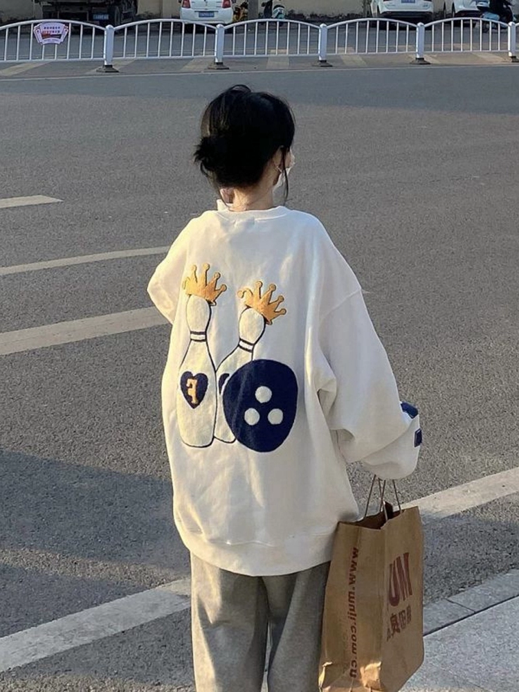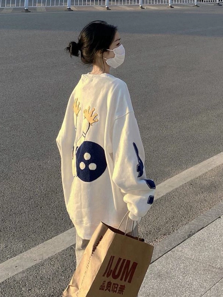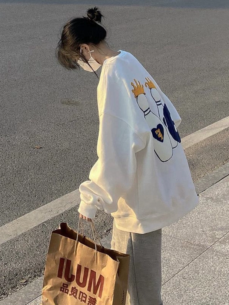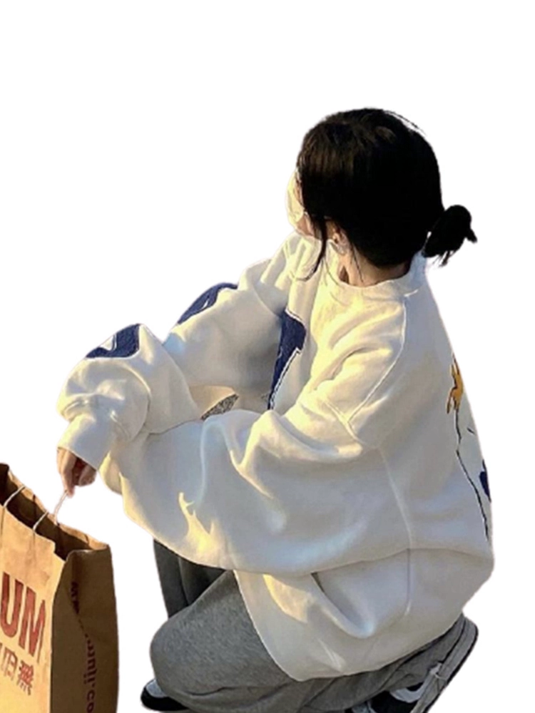 White sweatshirt for women spring, autumn and winter 2024 new style American style hoodless loose lazy style oversize thin coat