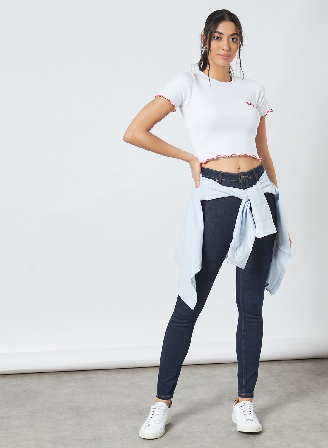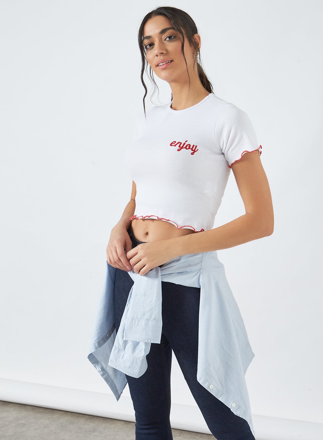 White T-Shirt with Lettuce Trim.