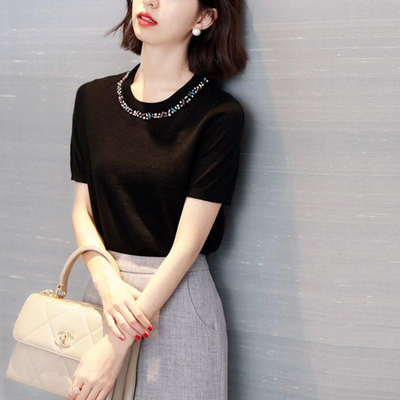 | nameOriginal | White thin ice silk short-sleeved sweater with diamond collar |