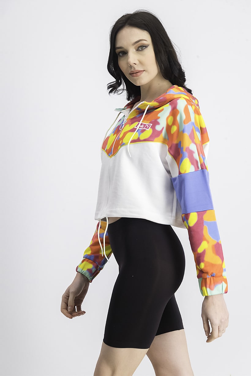 | descriptionOriginal | Sportswear Type : Jackets, Occasion : Sport, Fabrics : 42% Cotton, 58% Polyester, Ideal For : Women, Care : Machine washable, Pattern & Print : Brand Logo, Type of Sport : Training, Color Family : Multicolor, White, Types of Sleeve : Longsleeve, Types of Neckline & Collar : Hood with drawstrings, Types of Hem : Straight hem, Types of Closures : Pullover, |