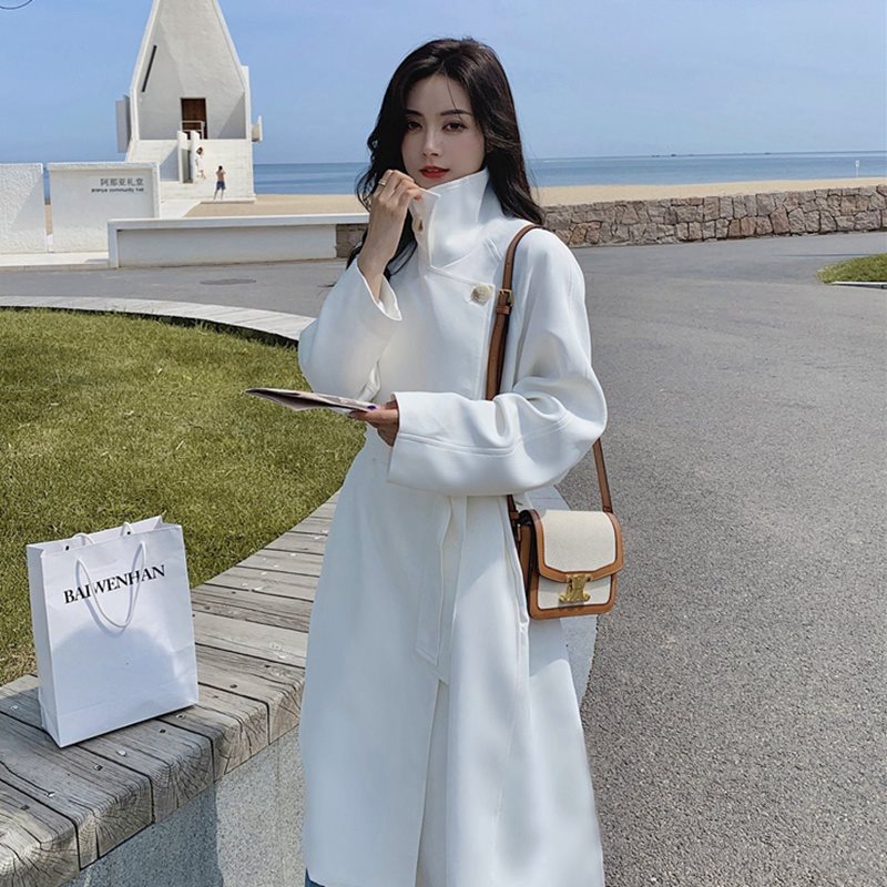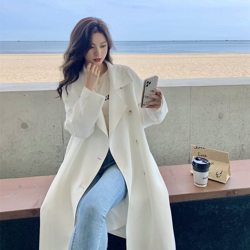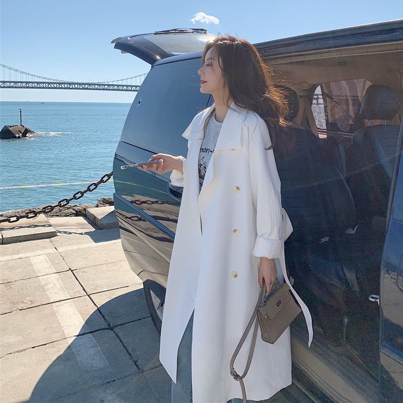 White trench coat women’s long spring and autumn 2024 new Korean style casual waist coat